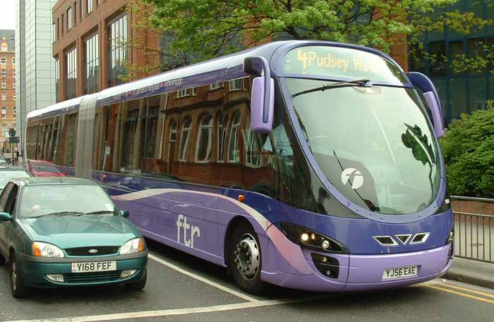 First's ftr fleet of futuristic Wright Streetcar bodied Volvo B7LA motors entered service on route 4 in Swansea, York and Leeds. The Leeds ones were definitely keeping a low profile in April 2007 and were often substituted by conventional Scania fleet members. However 19016 (YJ56EAE) did put in an appearance for the camera.