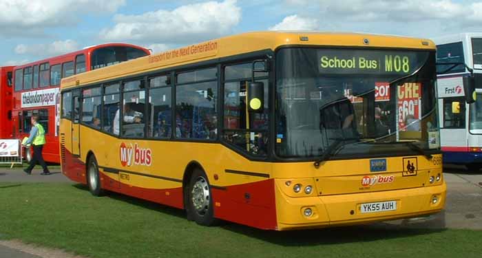 Despite being over here and over there, First's attempts to import bus concepts from across the Atlantic have not met with success. The Greyhound UK venture has shrunk away and American school buses never really caught on, despite kicking off the idea with a batch of right hand drive Bluebird AARE models imported to demonstrate the concept, the key facet of which - allocated seats checked off by the driver while boarding - was not really vehicle dependent. This bus, YS51YVH, was allocated to Halifax and is seen behind the interested crowds at SHOWBUS 2001. |