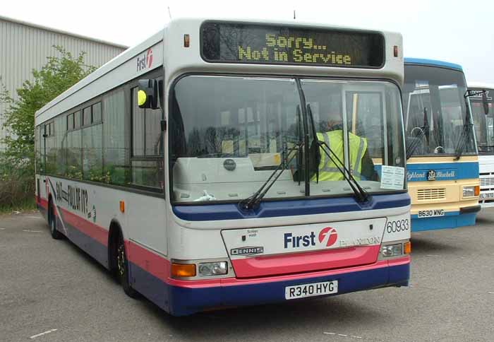 A refugee from York with First Western National was former Rider (York) 3370 (T370NUA). The Dennis Dart SLF, now 42845, has the less common Alexander ALX200 bodywork. It was photographed in 2005. ![]() | |