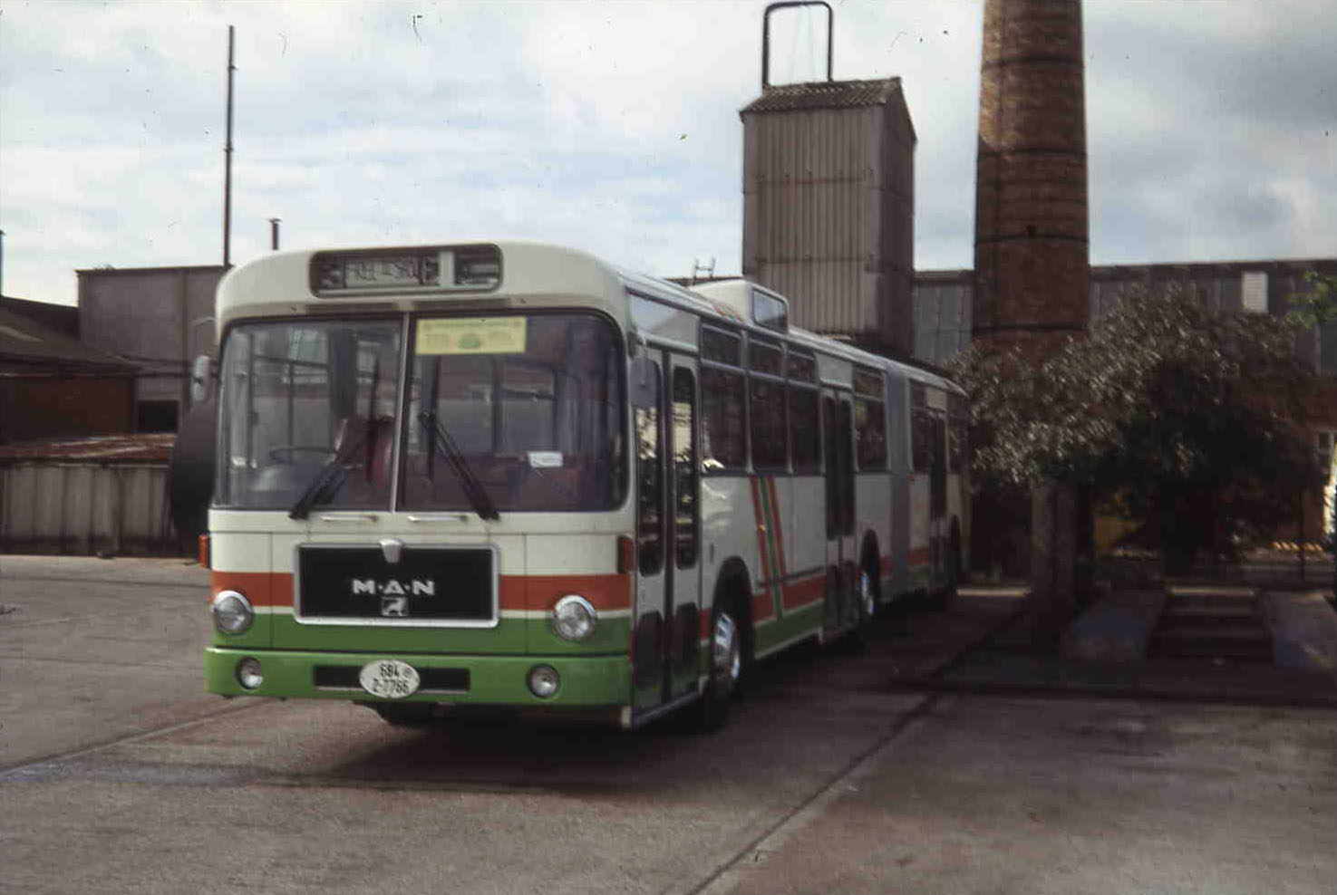 MAN's demonstration driver was a former employee of Red Rover - Keith Coaches so arranged to garage the bendibus overnight for the weekend in the Red Rover yard where it is seen nose in alongside one of their ex Nottingham MCW bodied AEC Renowns.