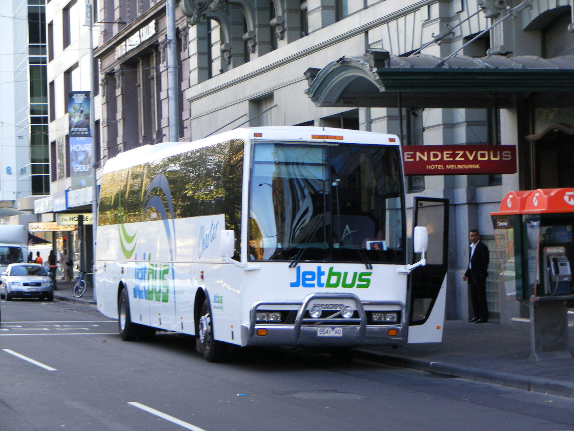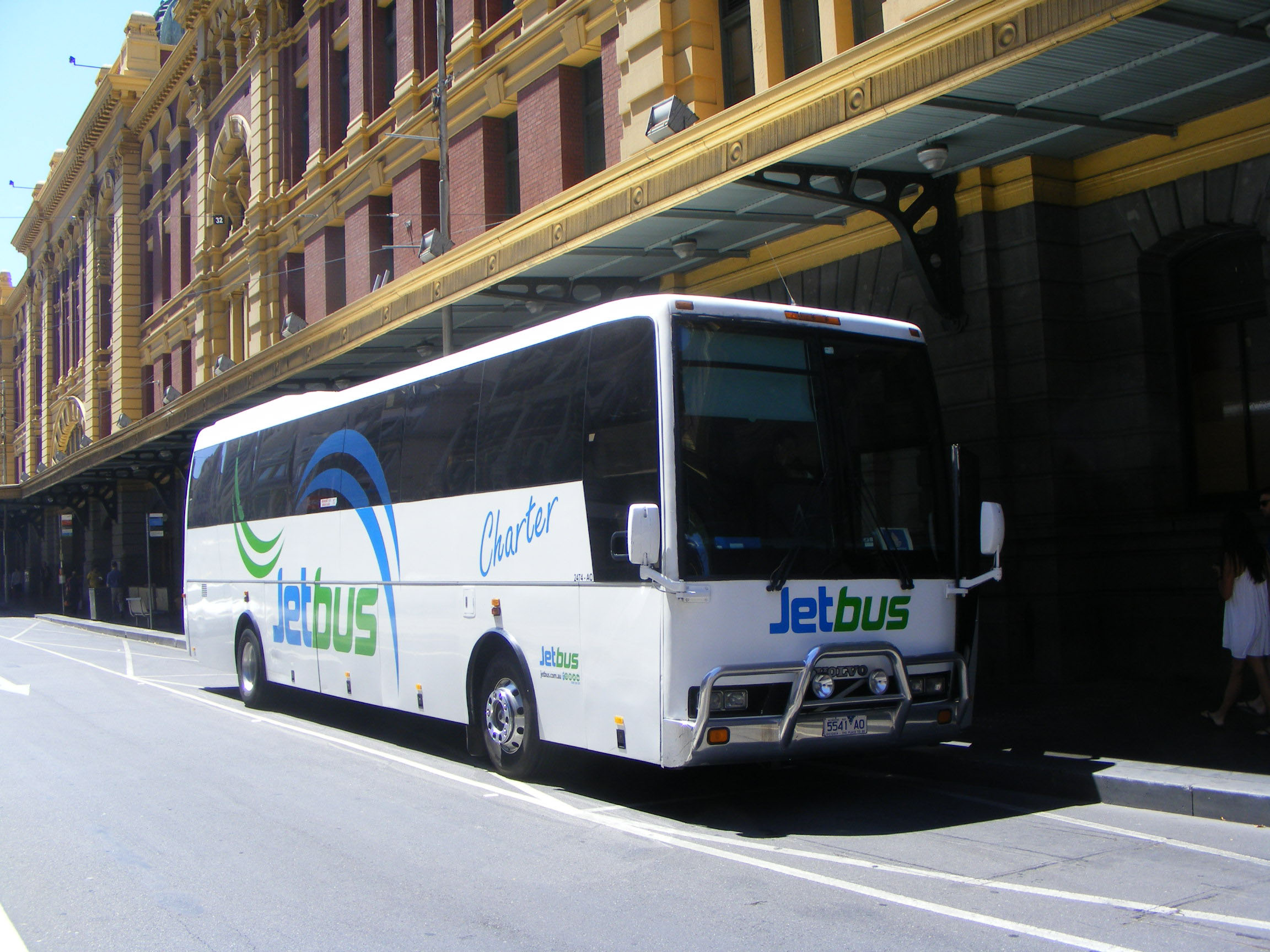 New in 1998 to Aires Tours of Ernest as 680FHI this Autobus bodied Volvo B7R passed south to Astins Limousines another Tullamarine operator that Jetbus acquired it from. It too was seen on Flinders Street, but unlike the two smaller buses did not require a luggage trailer. Ulitmately the coach passed to Glenorie in Sydney as TV9490. |