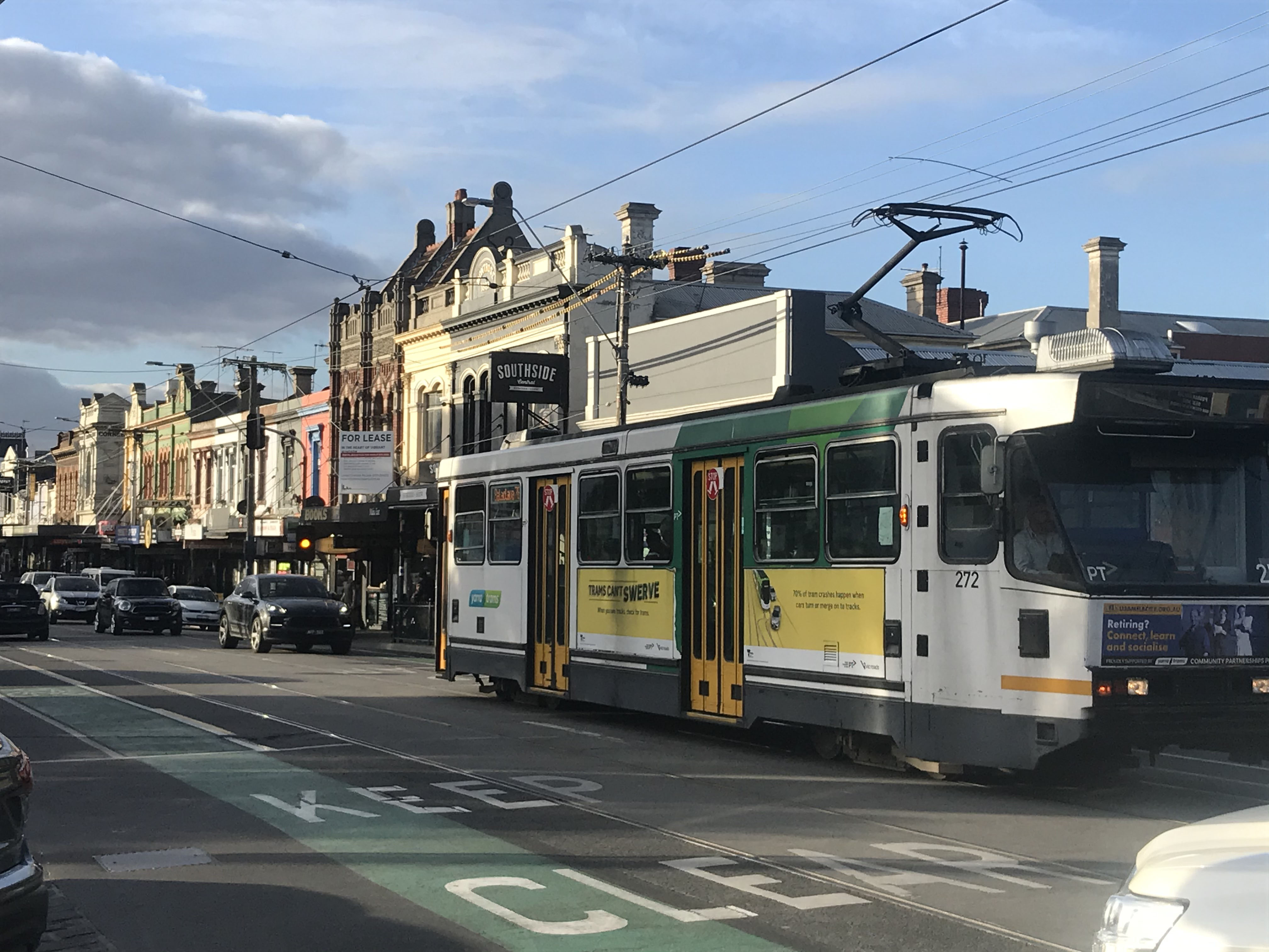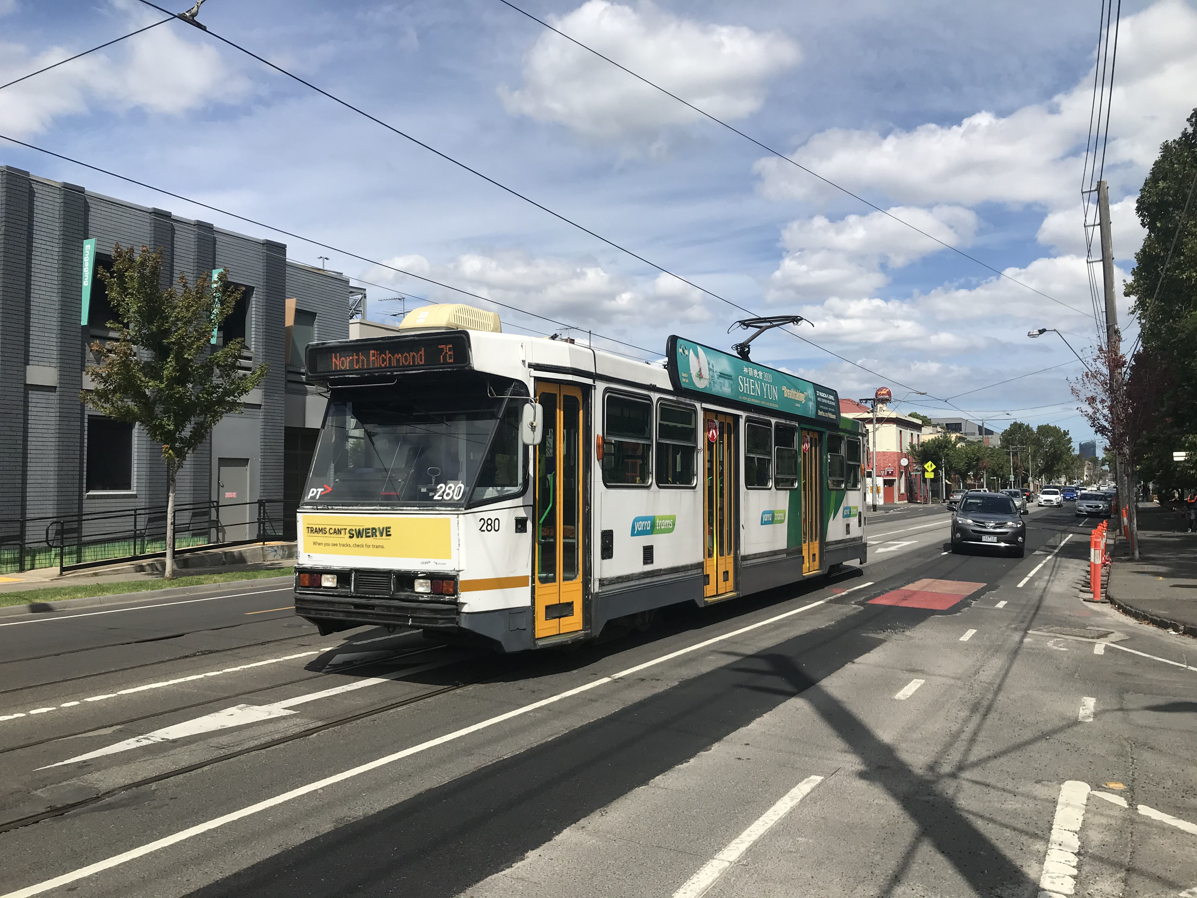 Car 280 trundles north on Chapel Street in March 2020 as COVID lockdowns approach.