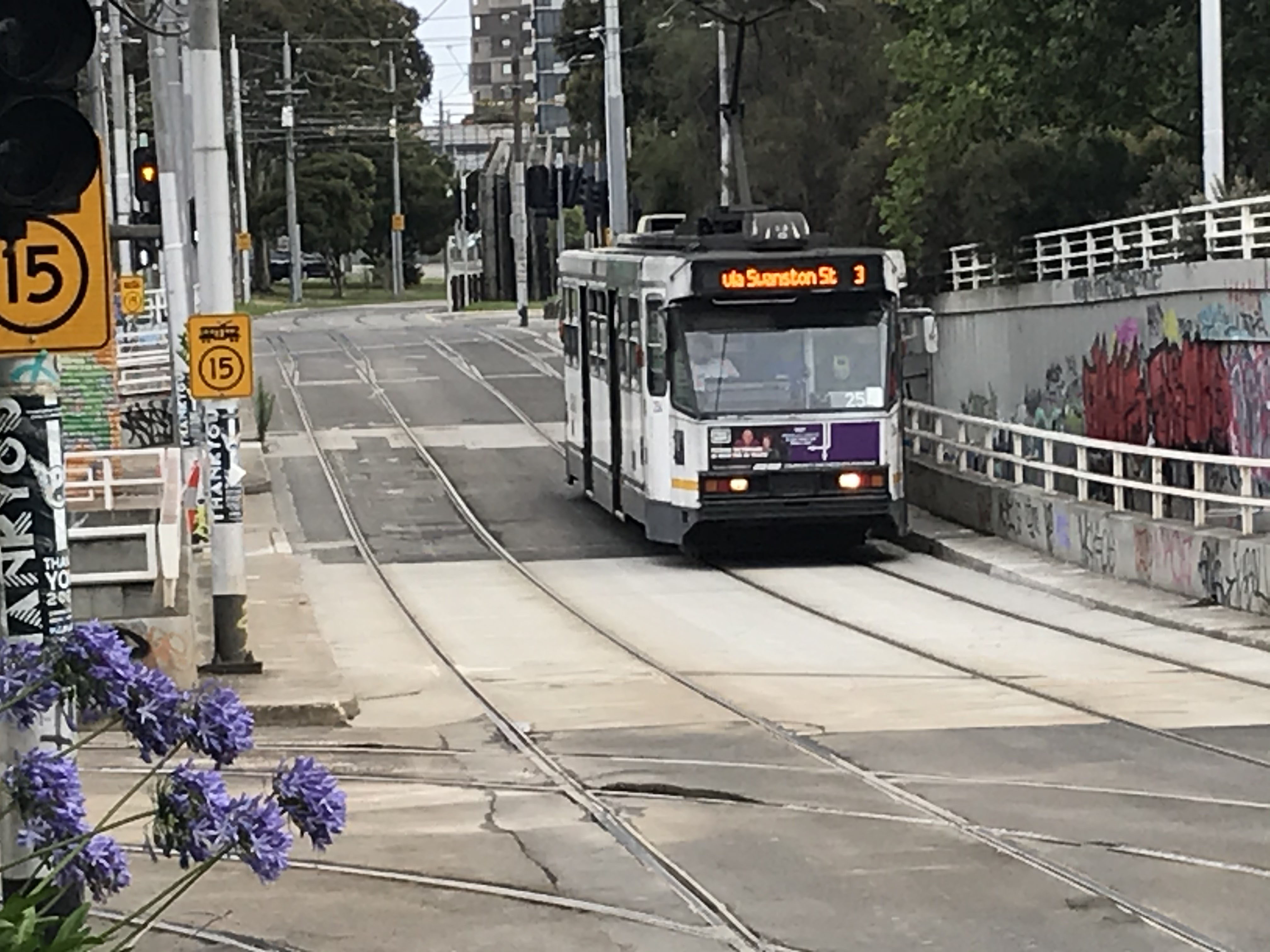 On the 3 to Melbourne University in January 2021 254 had just negotiated St Kilda Junction.