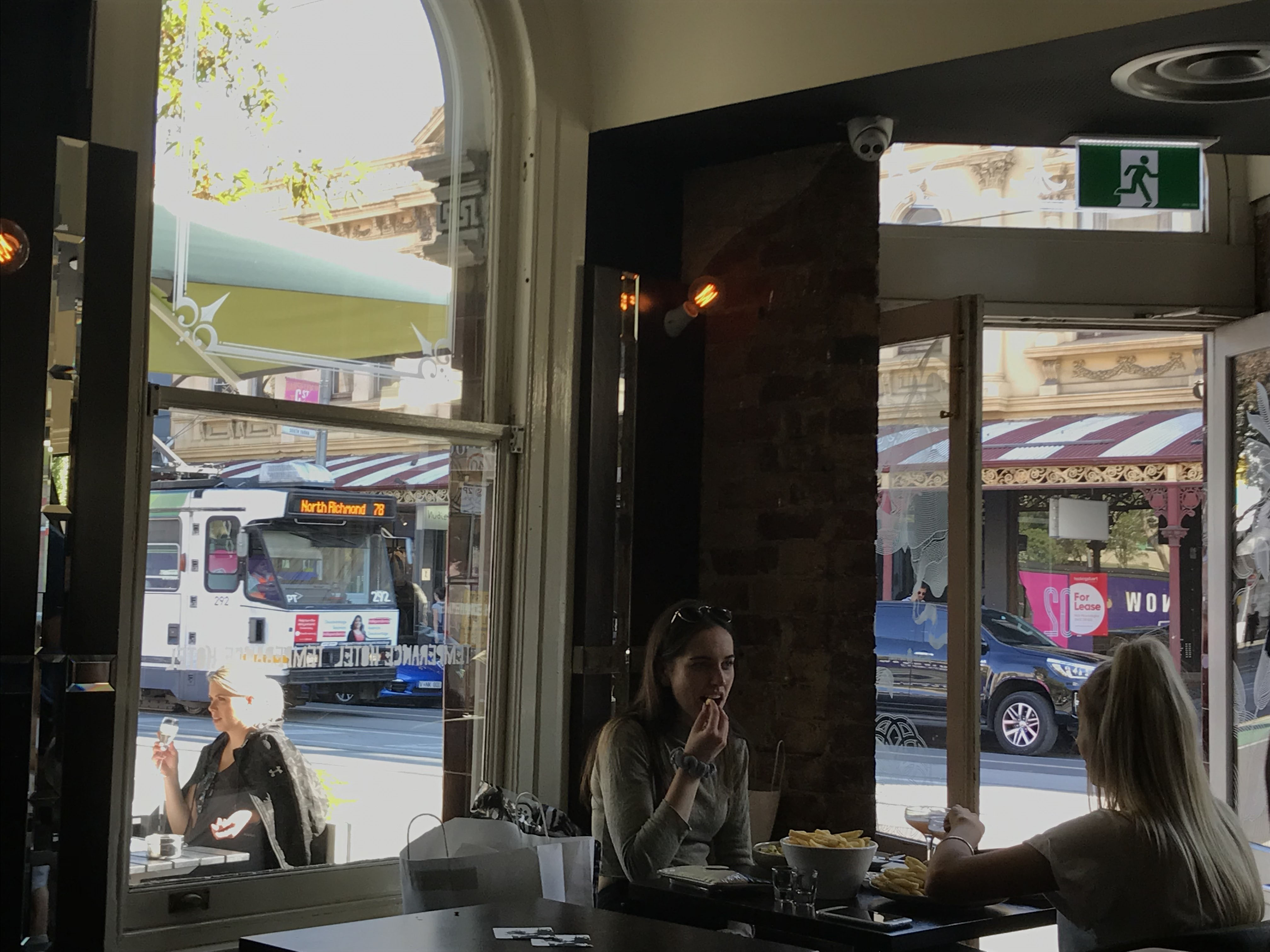 A typical Chapel Street scene, from inside the Temperance Hotel, 292 heads to North Richmond that April.