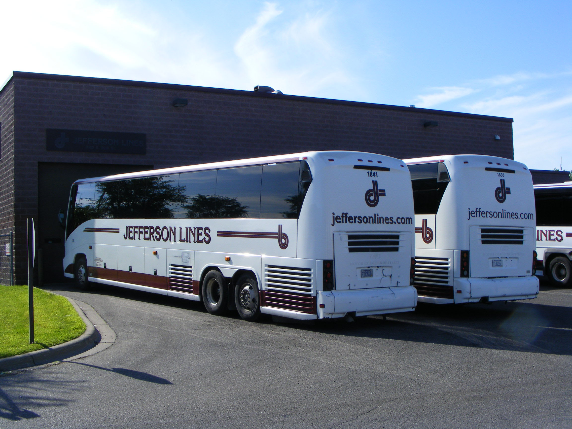 Jefferson Lines are based in Minneapolis but operate a network of express services across Minnesota and the Mid West going as far west as Spokane and south to Texarkana. The company is an avid MCI customer, but the Prevost Le-Mirage XL-II, 1829, was one of a pair bought in 2001 bringing the Prevost fleet strength to around twenty. All are now withdrawn, though the 2025 fleet includes four Temsa TS-35 new in 2012 and more recently a similar number of Van Hools out of a total of over one hundred motorcoaches. The Prevost was seen in August 2011 when all these pictures were taken.