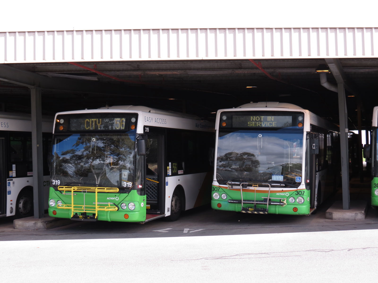 The last of the batch, 319 (BUS319), is seen in the Belconnen depot sheds with sister 307 (BUS307). Both have matching BUS regos, a nice touch when you own the buses and issue the regos. The Bus in Hawaii does exactly the same thing.
