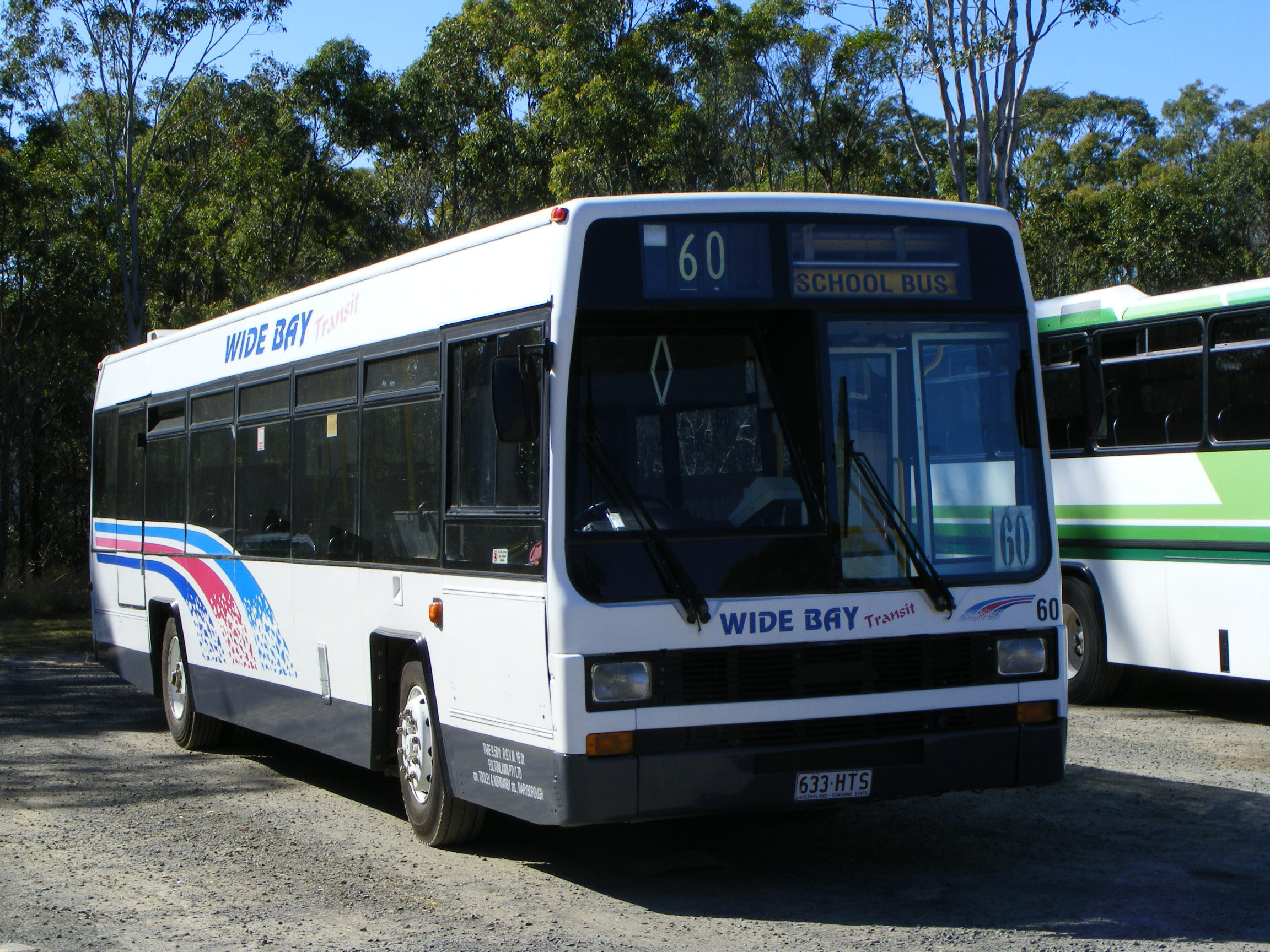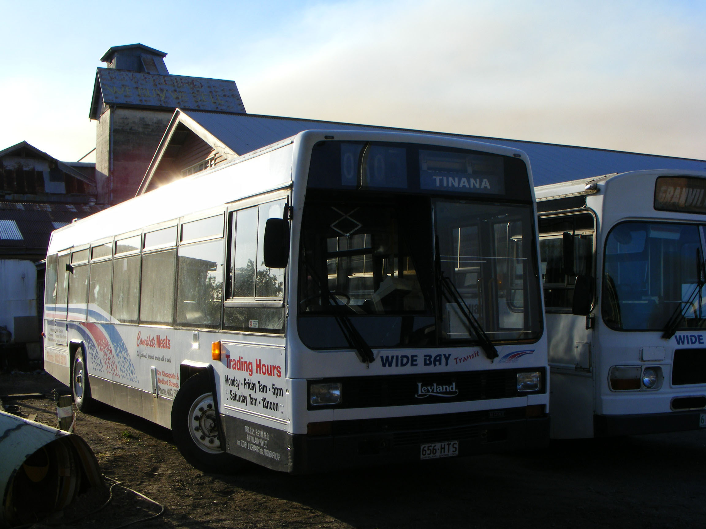 Parked alongside a former Darwin Leyland B21 at their depot is Wide Bay Transit Leyland Lynx 61 (656HTS), which had been new to ACTION in 1990 as 730 (ZIB730). The bus was one of a pair acquired via Connex/Southtrans in Sydney. |