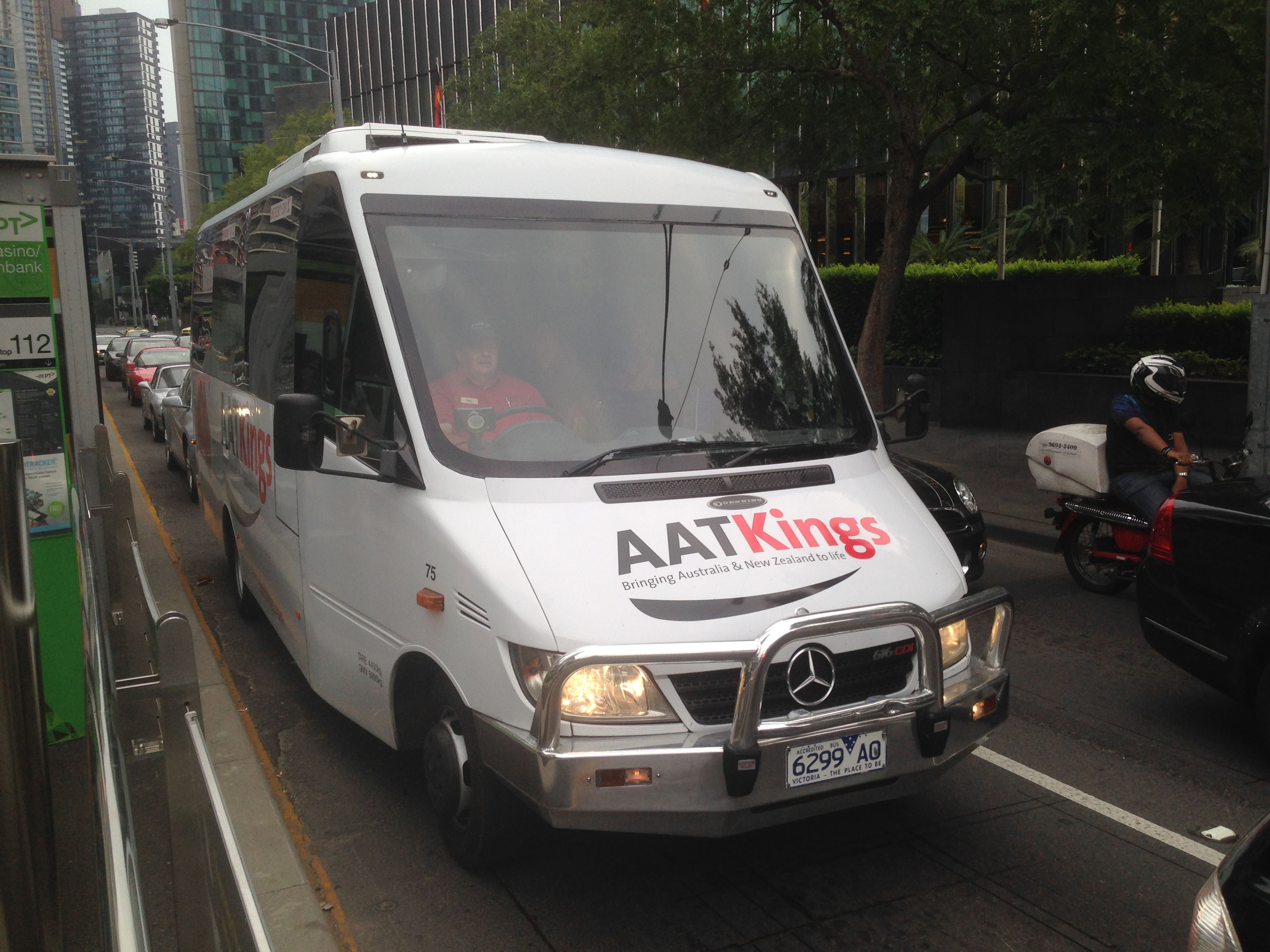 The Denning Vario bodied Mercedes Sprinter 616CDi, 75 (6299AO) is seen on Queens Bridge Street by the Casino in January 2016. The minicoach was new to Young at Heart Holidays who sold it to Dysons where it was 373. They sold it back to Young at Heart who sold it on to Bayside-Nuline. It is now withdrawn.