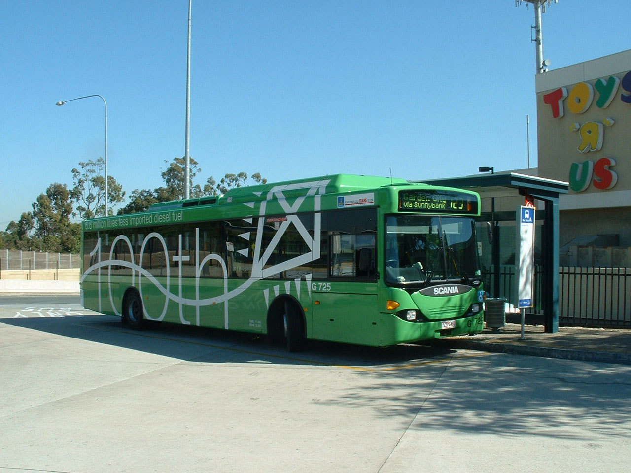 As 625 was the first Scania one might puzzle as to why 725 (725GWU) - and not 724 - wears this special livery proclaiming to be the hundredth. Well the folks at Brisbane Transport are a wary lot and thought better than to have a vehicle bearing the mark of the devil. There is no fleet number 666!