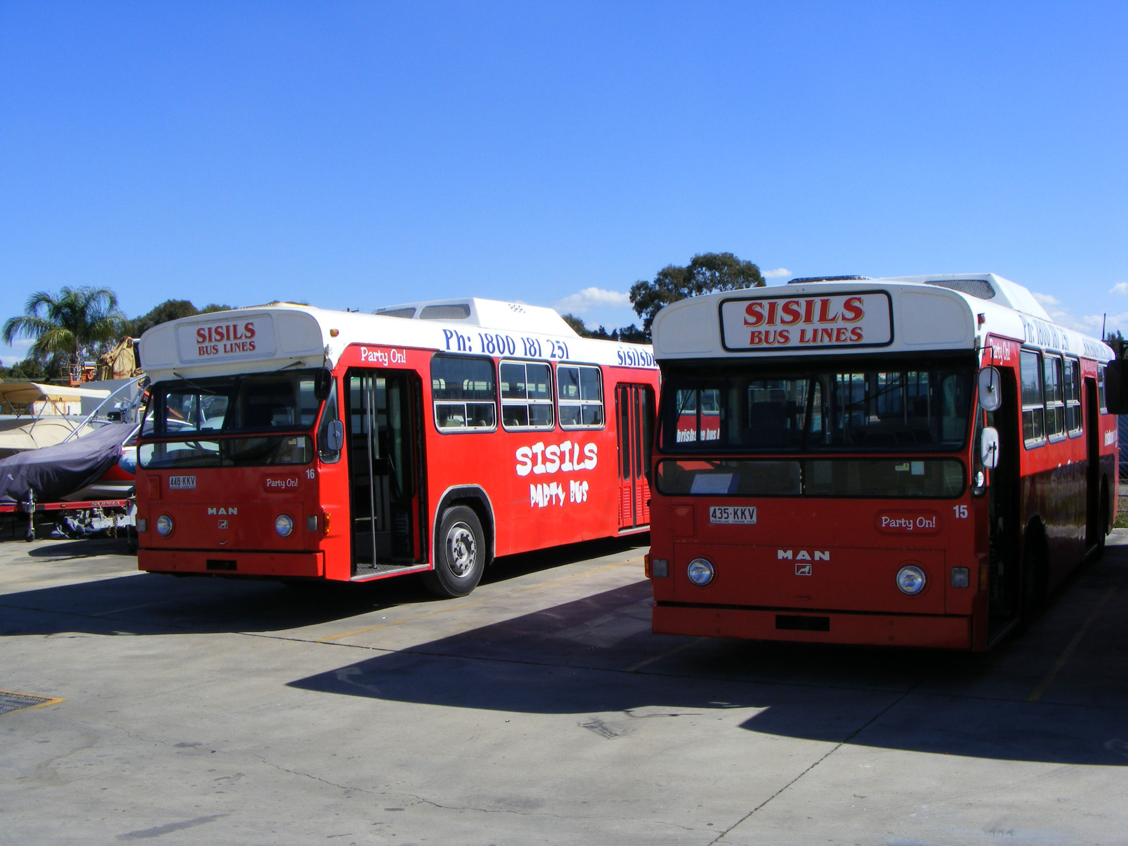 Two more former Brisbane City Council MAN SL200 Party Buses seen in 2009 were Sisils 15 (435KKV) and 16 (448KKV). The latter was acquired directly from Brisbane where it was 866 (866ERR), whereas 15, lke 14, came via Garden City Sunbus and Bus Queensland where it had been 6084 and 288 (288KHZ), respectively. It had been Brisbane 957 (957BXJ). |