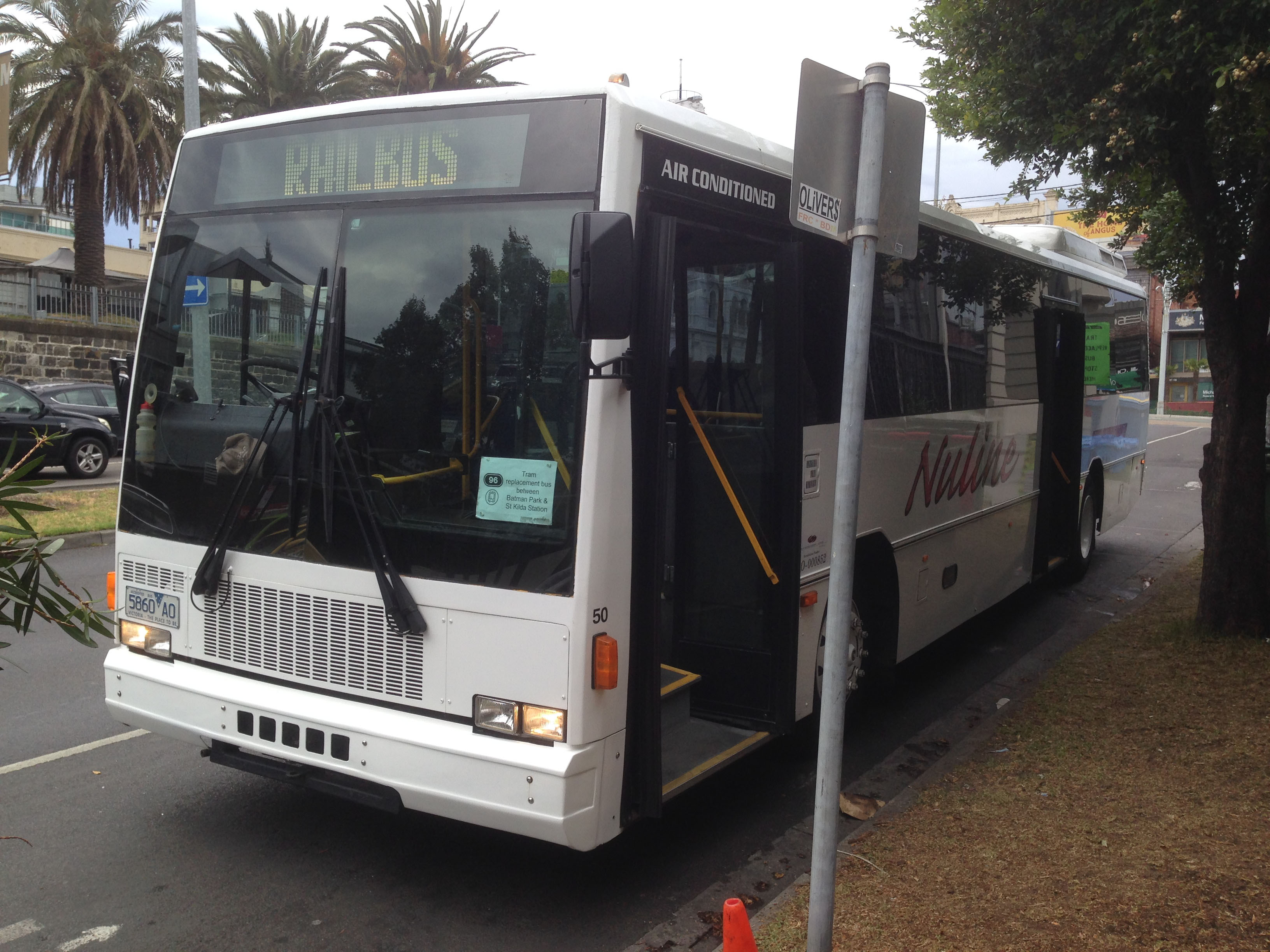 In January 2016 sister vehicle 50 (5860AO) was at work on route 96 tram replacement work from St Kilda Station. It was Brisbane Transport 345 (345BVK).
