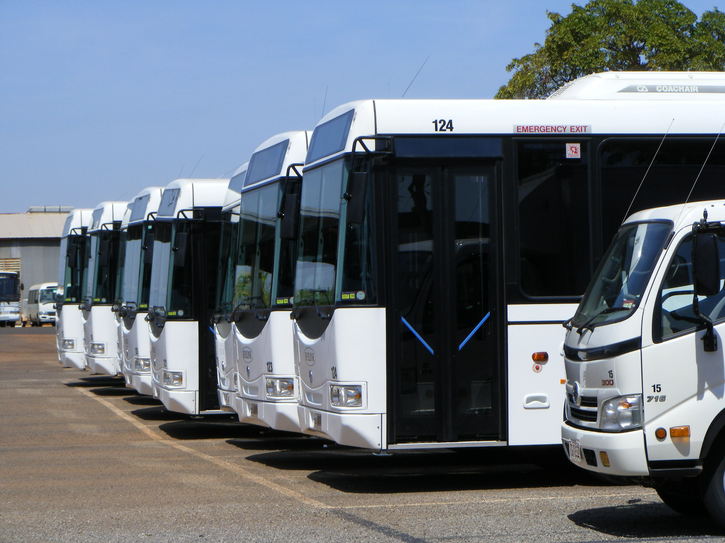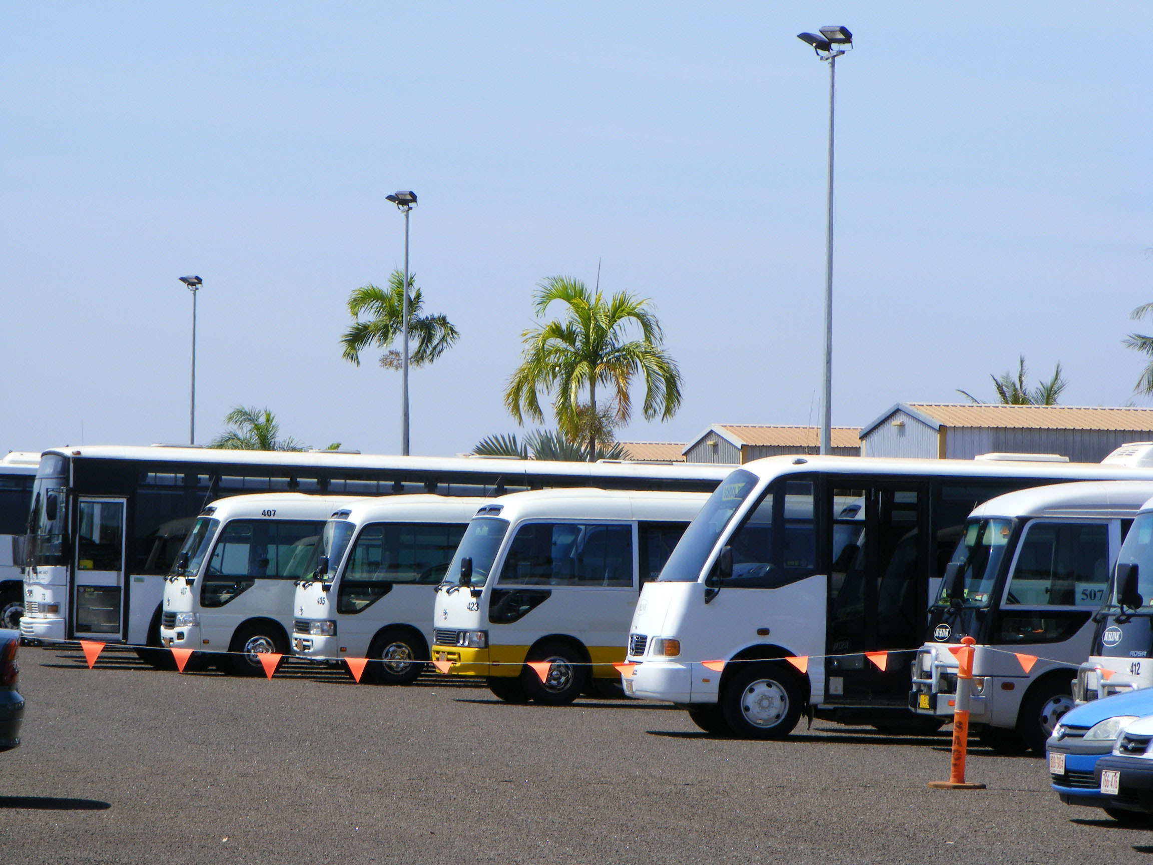 Several of the Bustech Mercedes are seen at the Berrimah depot in August 2008, starting with 124 (MO3022).