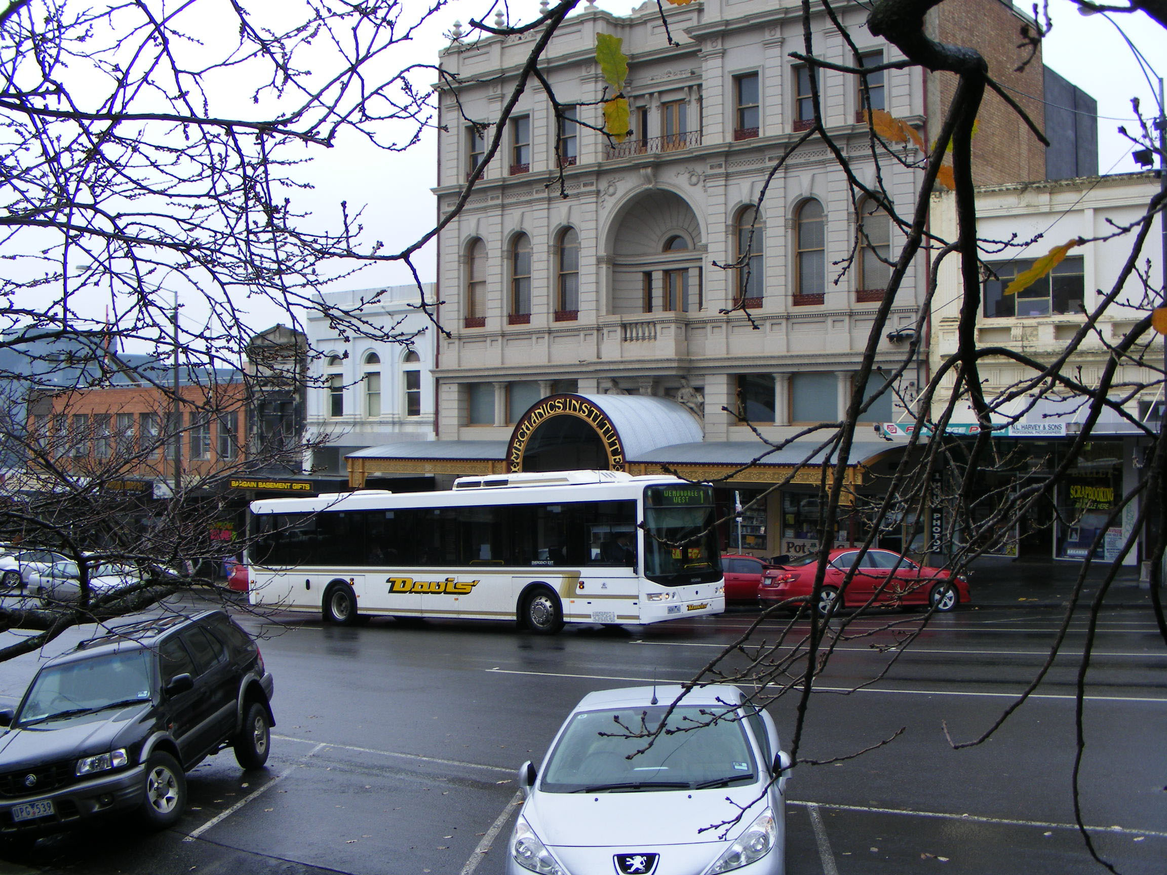 Seen in the town centre is Scania L94UB/Volgren CR228L 167 (6081AO). The bus was just over two years old when seen in August 2008.