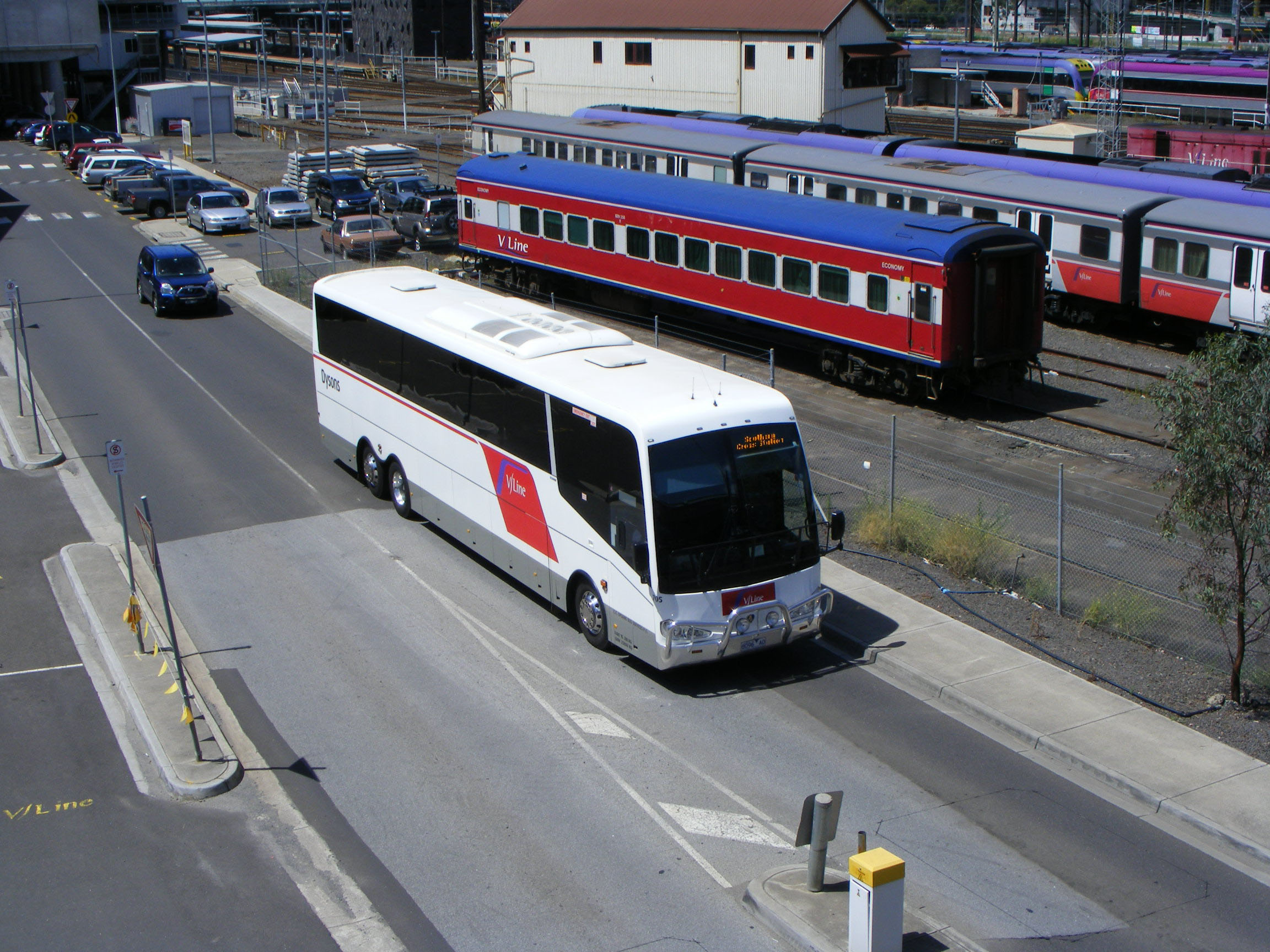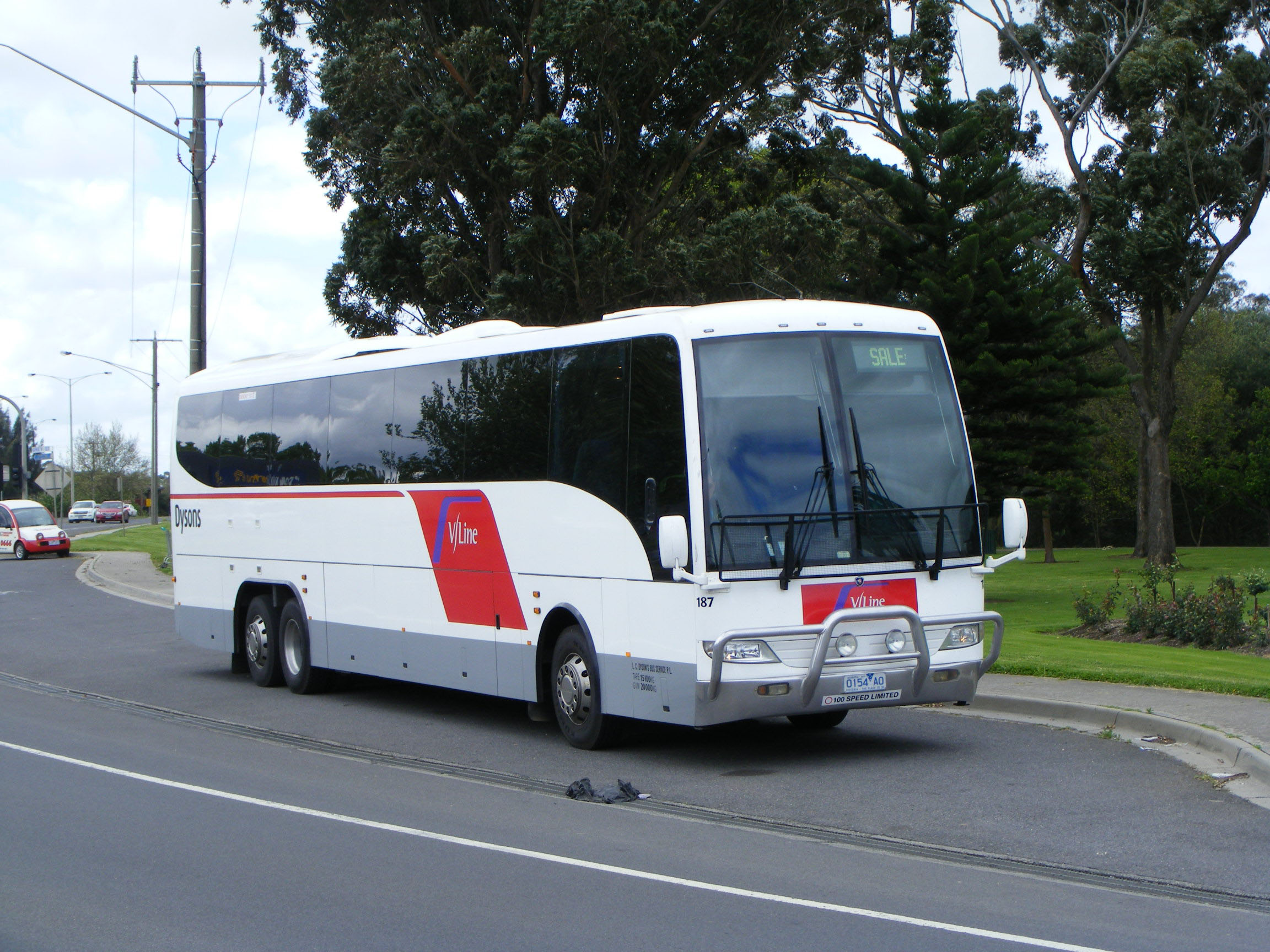 What is believed to be Coach Concepts bodied K420EB 738 (9266AO) is seen in November 2014 near Anderson on the Bass Highway where the service from Dandenong connects with South Coast Transit's Cowes - Wonthaggi service.
