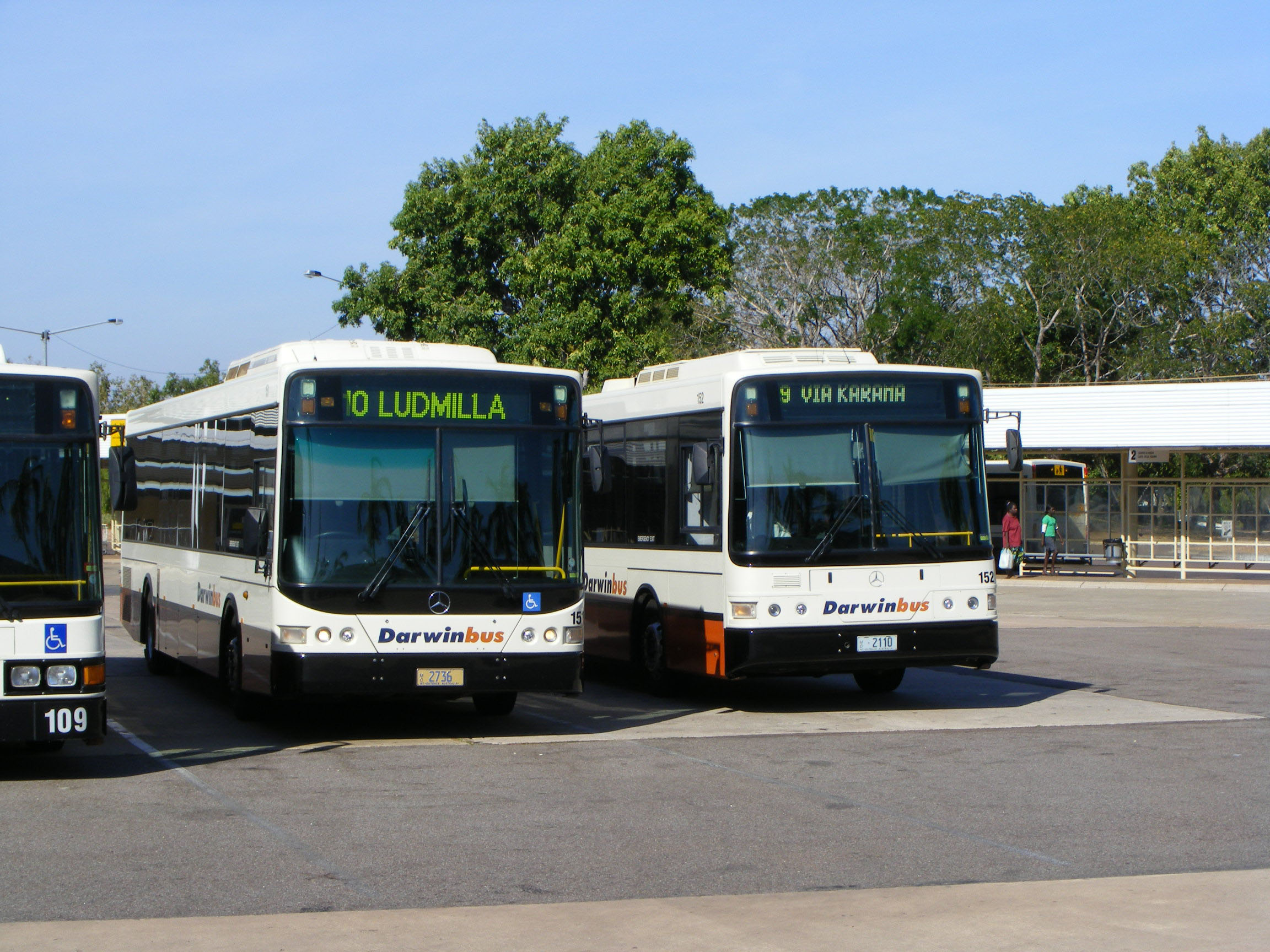 By August 2005 Buslink's services in Darwin were marketed jointly with those provided directly by the government using the Darwinbus fleetname and the livery used by Darwin Bus Service. Seen here is the bus which epitomised the Buslink fleet in the city for some years, a Volgren CR228L bodied Mercedes O500LE, 151 (MO2736) new in late 2004. In 2018 the bus was sold to Dysons as their 1062 (BS04BH) for primary use on rail replacement work. |