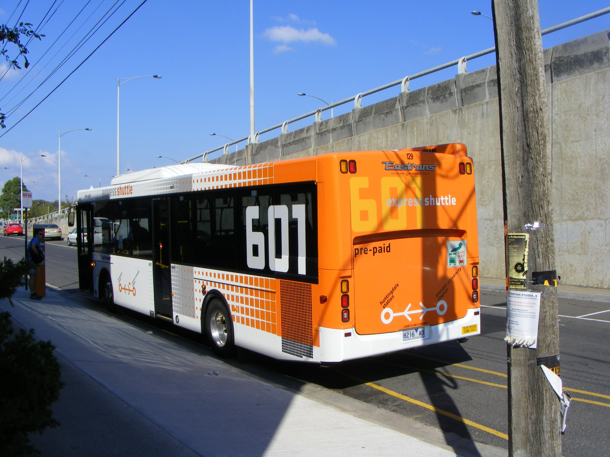 Pulling on to the Huntingdale stand is the third of the four buses bought for the service, 129 (8216AO).