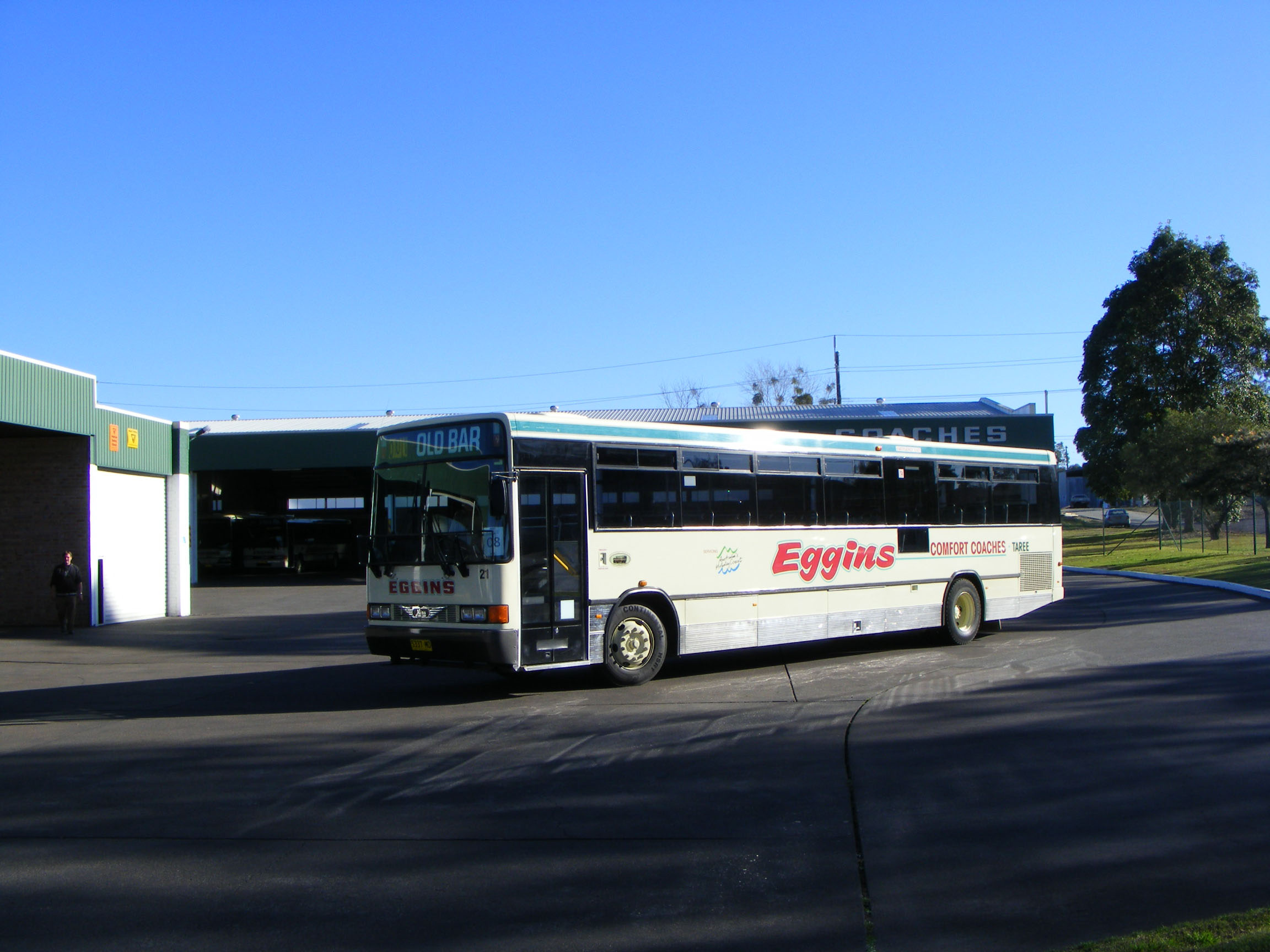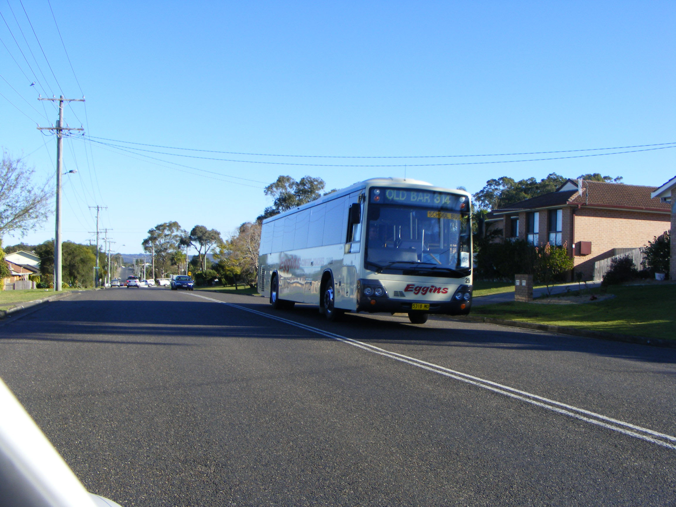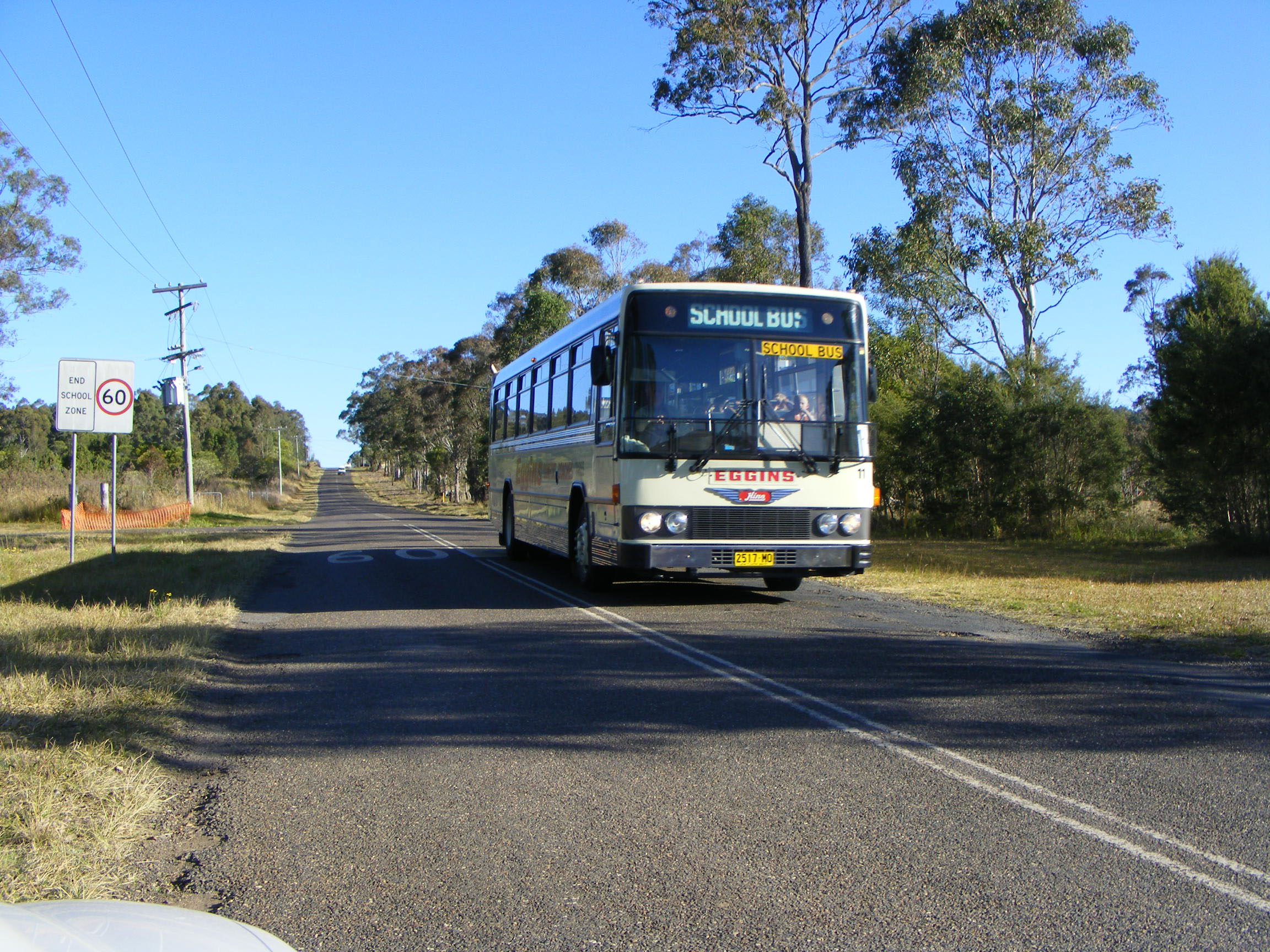 Passing through the area again in August 2009 the fleet had been numbered and re-registered in the new statewide reversed registration system, Eggins numbers are in the range 5311MO-5339MO. This Hino CM277K school bus with Custom body however received 2517MO and also fleet number 11. It has since been replaced by a new 11, a Custom SB40 bodied Hino new in 2010 to Lansdowne Bus Service and acquired by Eggins two years later. This number 11 passed to Goolwa Bus and Coach in South Australia as their 47 (SB27DT).