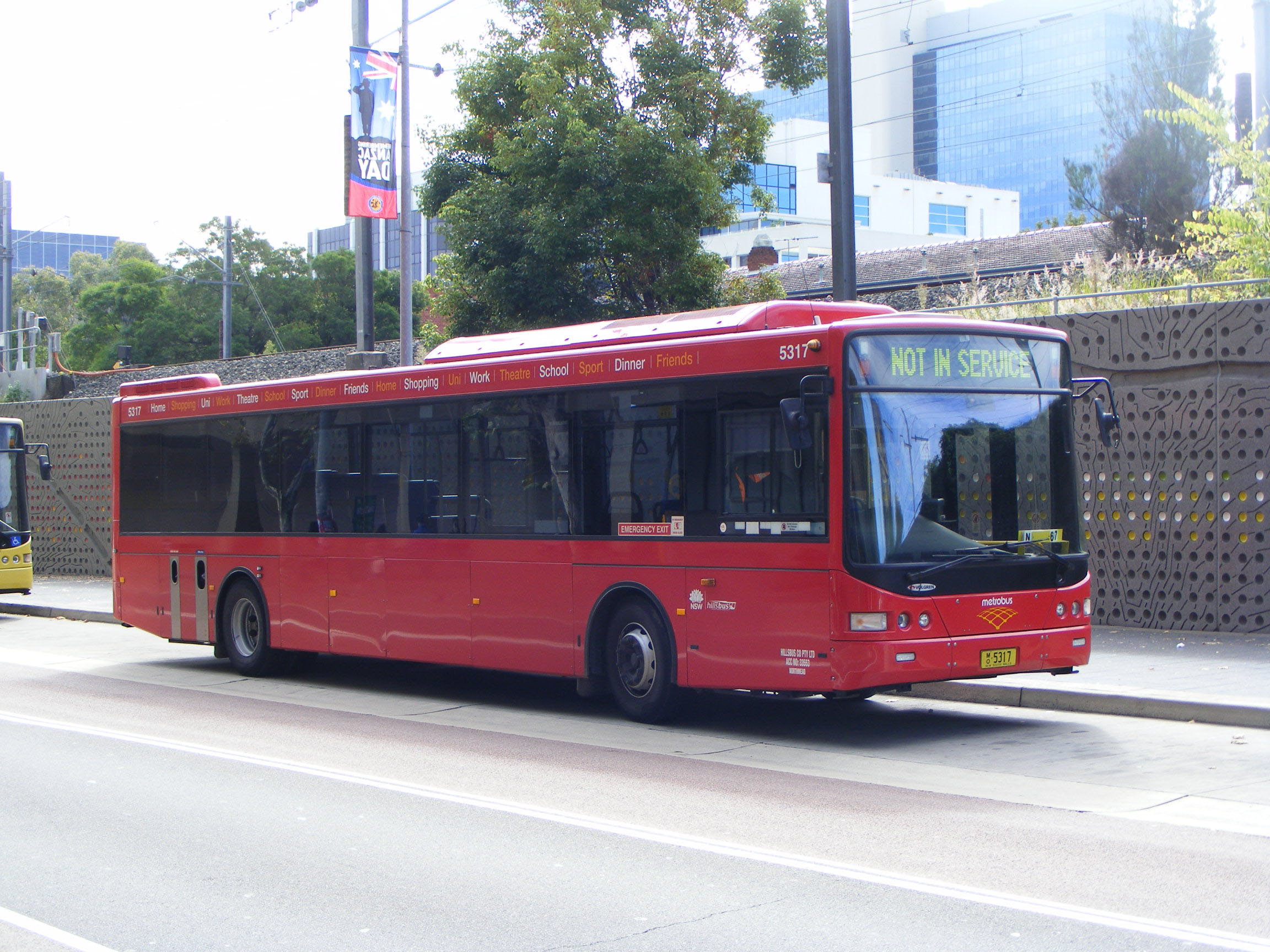 The Metrobus branding applied to key trunk routes on the Sydney network was extended from Sydney Buses to other operators in the metropolitan area. The express route to Hornsby became the M60 and Volgren CR228L bodied Volvo B7RLE 5317 (MO5317) is seen working it near Central Station in April 2012. |