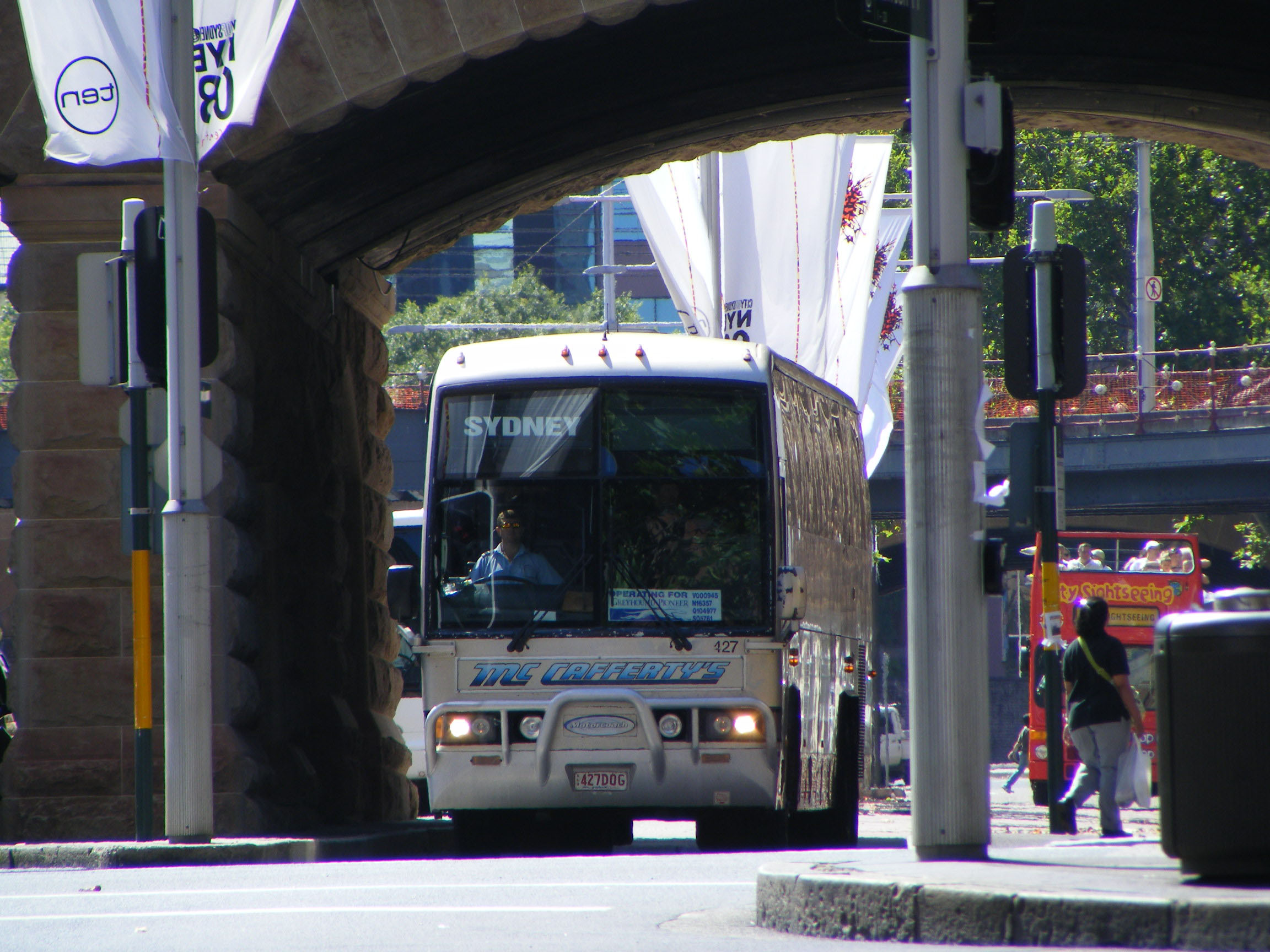 Toowoomba in March 2016, over fifteen years since McCafferty took over Greyhound Pioneer Australia and formed Greyhound Australia, yet the sign still stands at the old coach terminal in the company's home town. McCafferty's Coaches was formed in April 1940 when Jack McCafferty began a service from Picnic Point to Rangeville in Toowoomba.