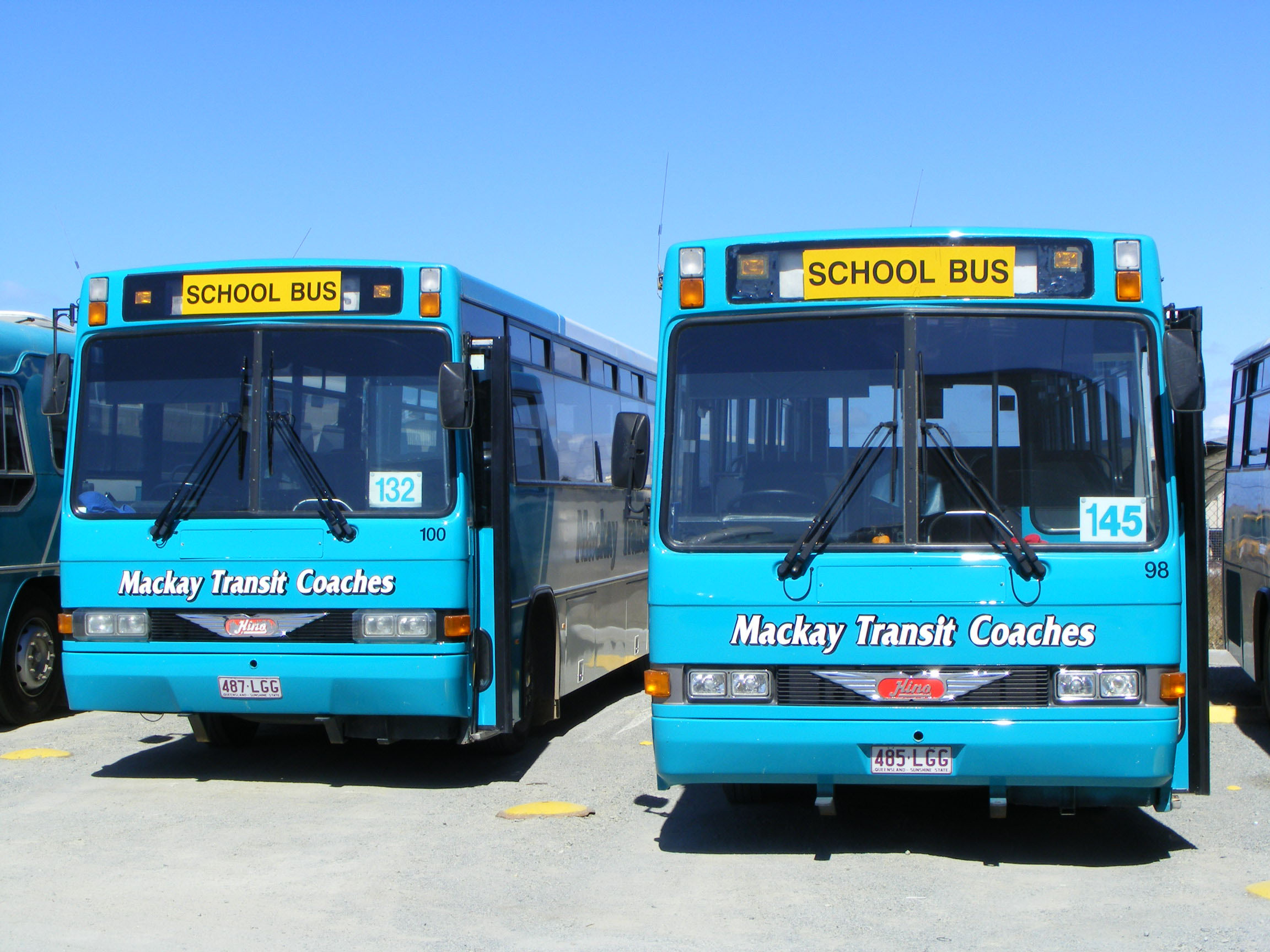More former Latrobe Valley Hino RK176K buses in the schools fleet. Dating from 1994, we have 98 (485LGG) with Newnham body formerly Latrobe Valley 39 (3839AO) and 100 (487LGG) with Custom body, ex Latrobe Valley 35 (3835AO). |