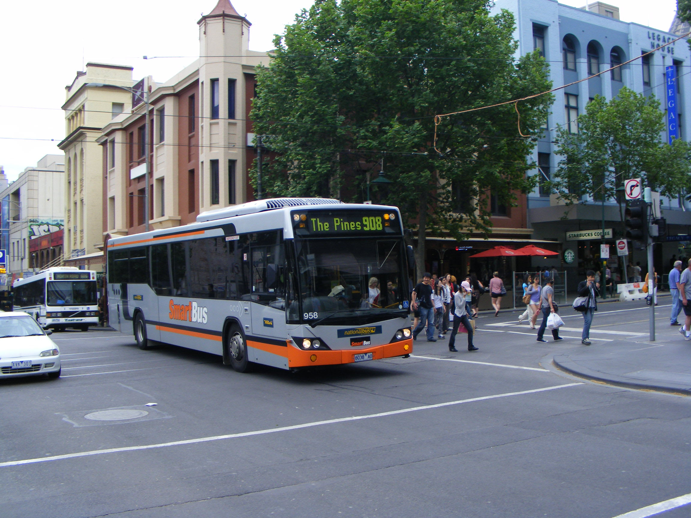 Sister vehicle 958 (8038AO) is seen on the same day leaving the city for The Pines, a Doncaster Shopping Centre, on the 908.