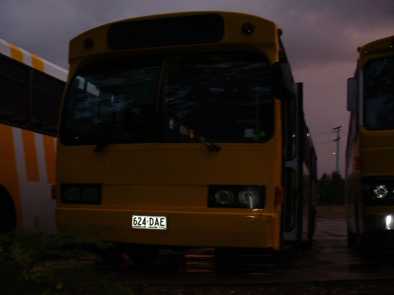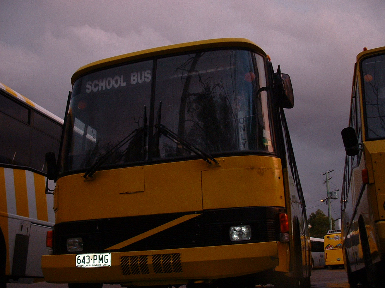 The third member, 648 (648PNK), had slightly different frontal treatment. It is seen towards the end of the line of school buses next to a main fleet Bustech, an ex Coomera Volvo, still in Coomera colours and an ex STA Mercedes. |
