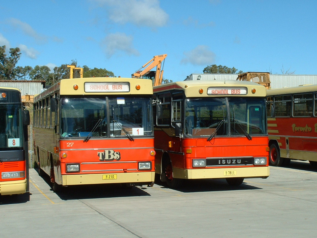 A mixed line up of four buses in the Toronto depot yard. Nearest the camera is Isuzu 5 (MO4762) an ECR570/PMC of 1986 which had spent a spell with the associated Morisset Bus Services fleet. Next in line is 22 (MO7018) a PMC bodied MAN 16.280 dating from 1982, then Leyland Lynx look-a-like unnumbered MO2379 a Mercedes OH1418 with PMC Commuter body dating from 1993. Fleet number 24 on the end is all the information available on the bus. |