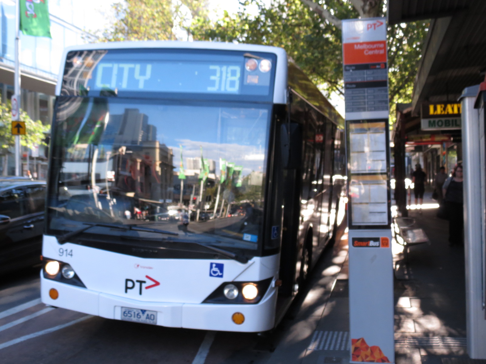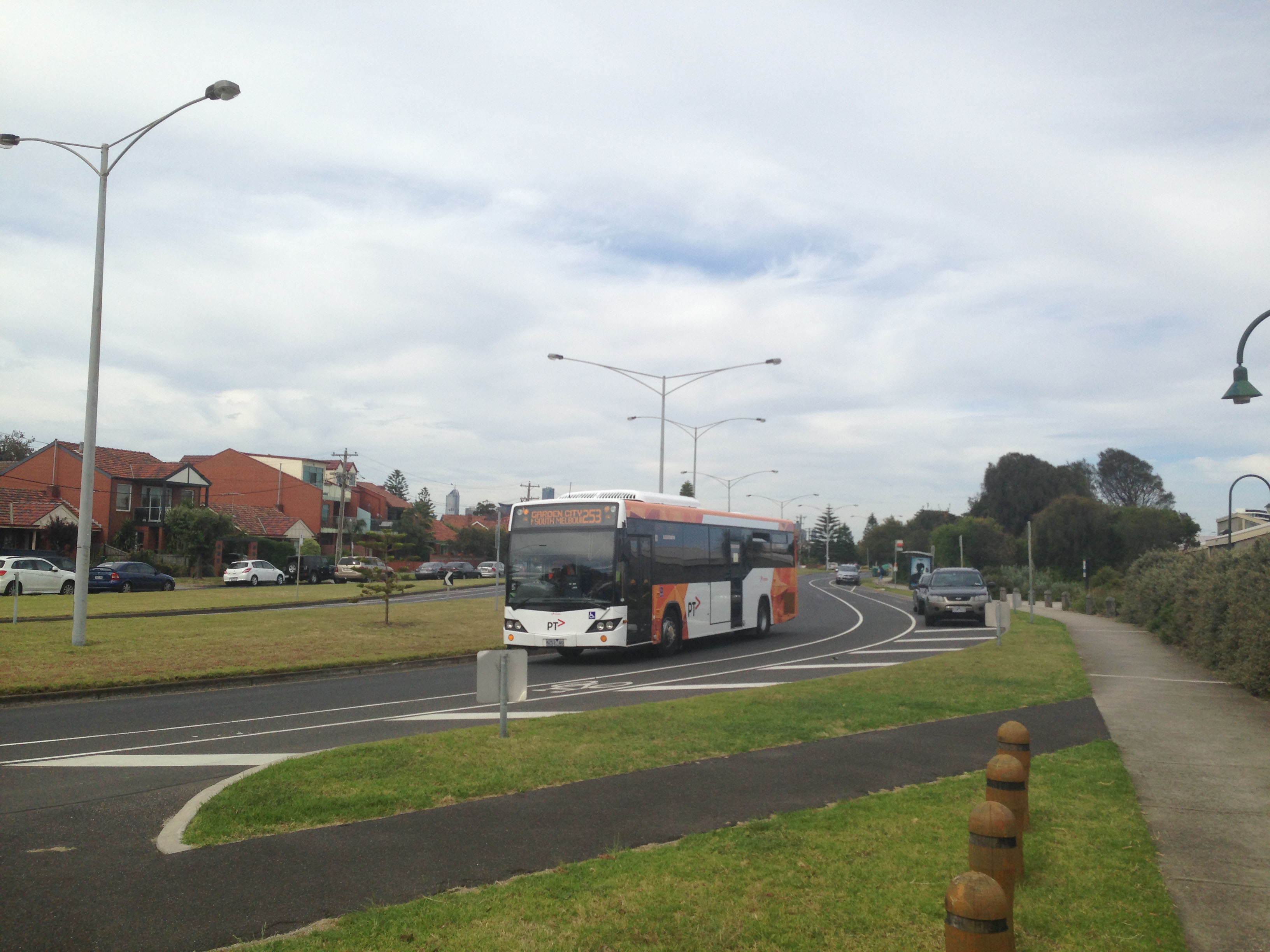 Late November 2013 at Fisherman's Bend former National Bus 921 (6253AO) appeared to be the only two tone blue bus repainted in PTV colours at the time. This is a six year old Custom CB60 Evo II bodied Scania K230UB. |