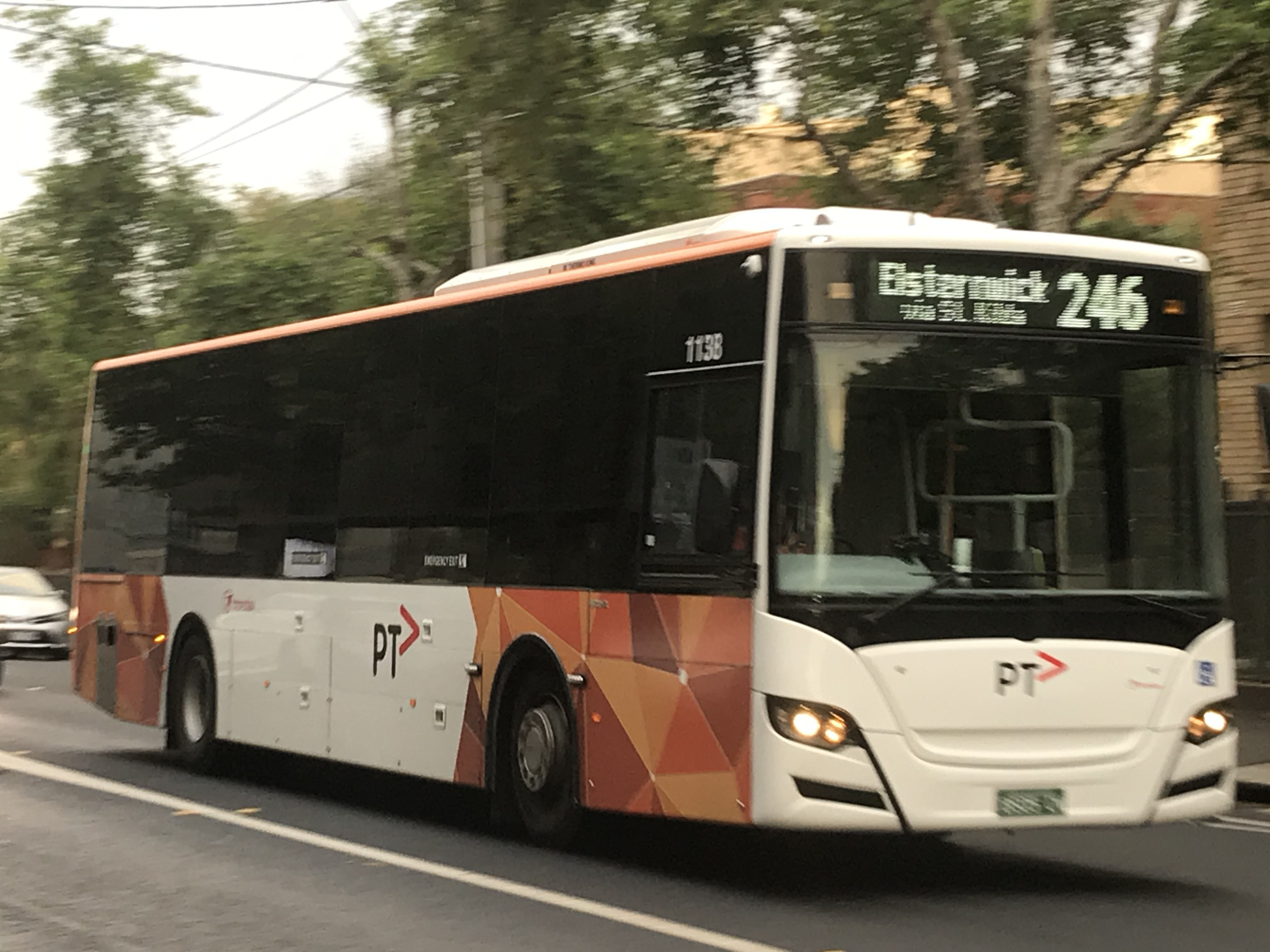 The eccentric 38xxxx numbering scheme seemed to get abandoned in 2019 with huge batches of Volgren Optimus and Gemilang bodied Scanias arriving starting with 1101. Here is K310UB 1138 (BS05CW) seen heading for Elsternwick in St Kilda in November. The new buses seem to have ousted large numbers of the Custom bodied MAN vehicles which were the mainstay on the 246. New buses though to 1186 at least were all initially allocated to North Fitzroy.