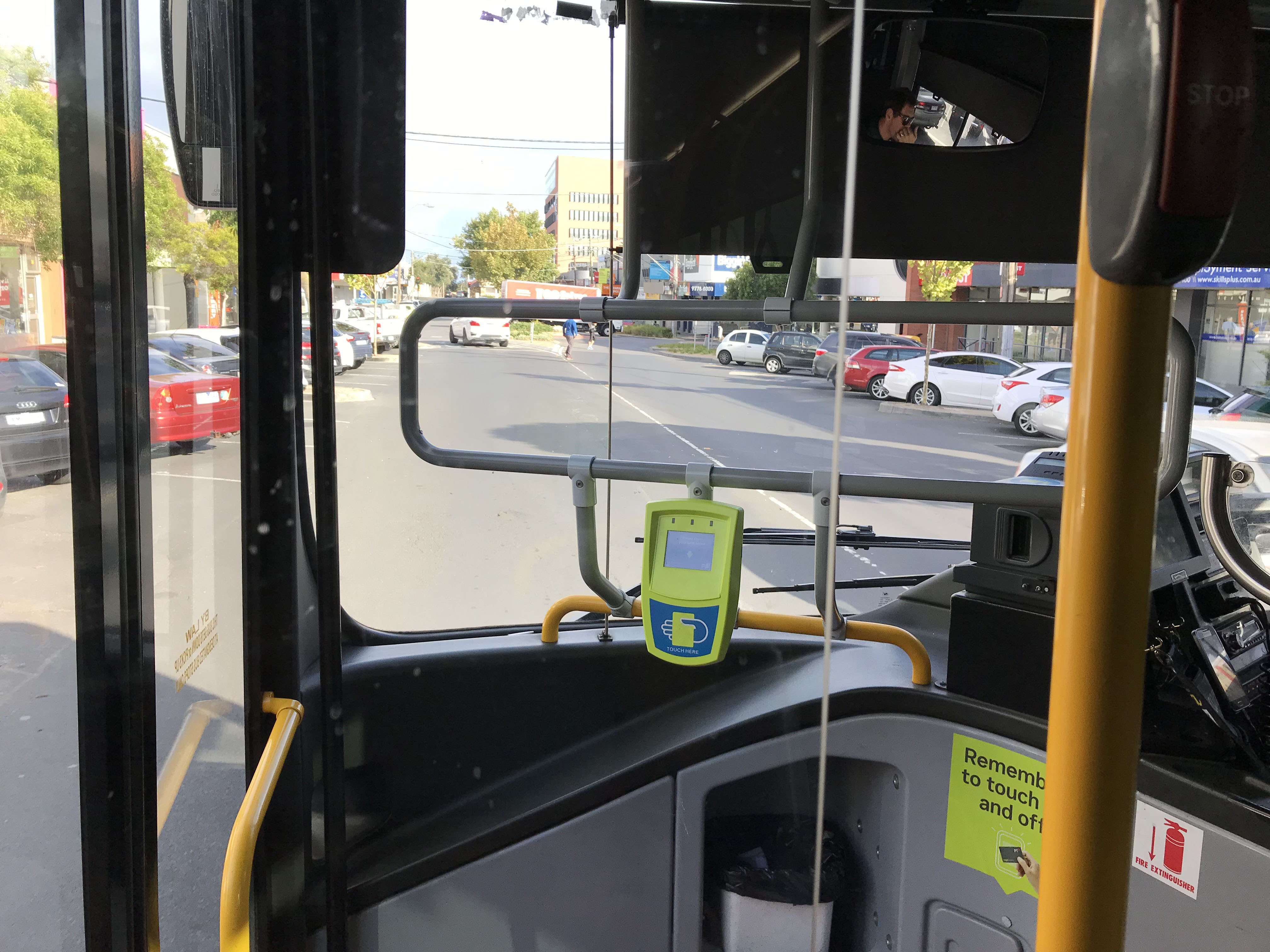 Here is the view from the front passenger seat as 1059 makes its way to Portsea. The "angle iron" in the windscreen seems excessive to support the tiny card reader!