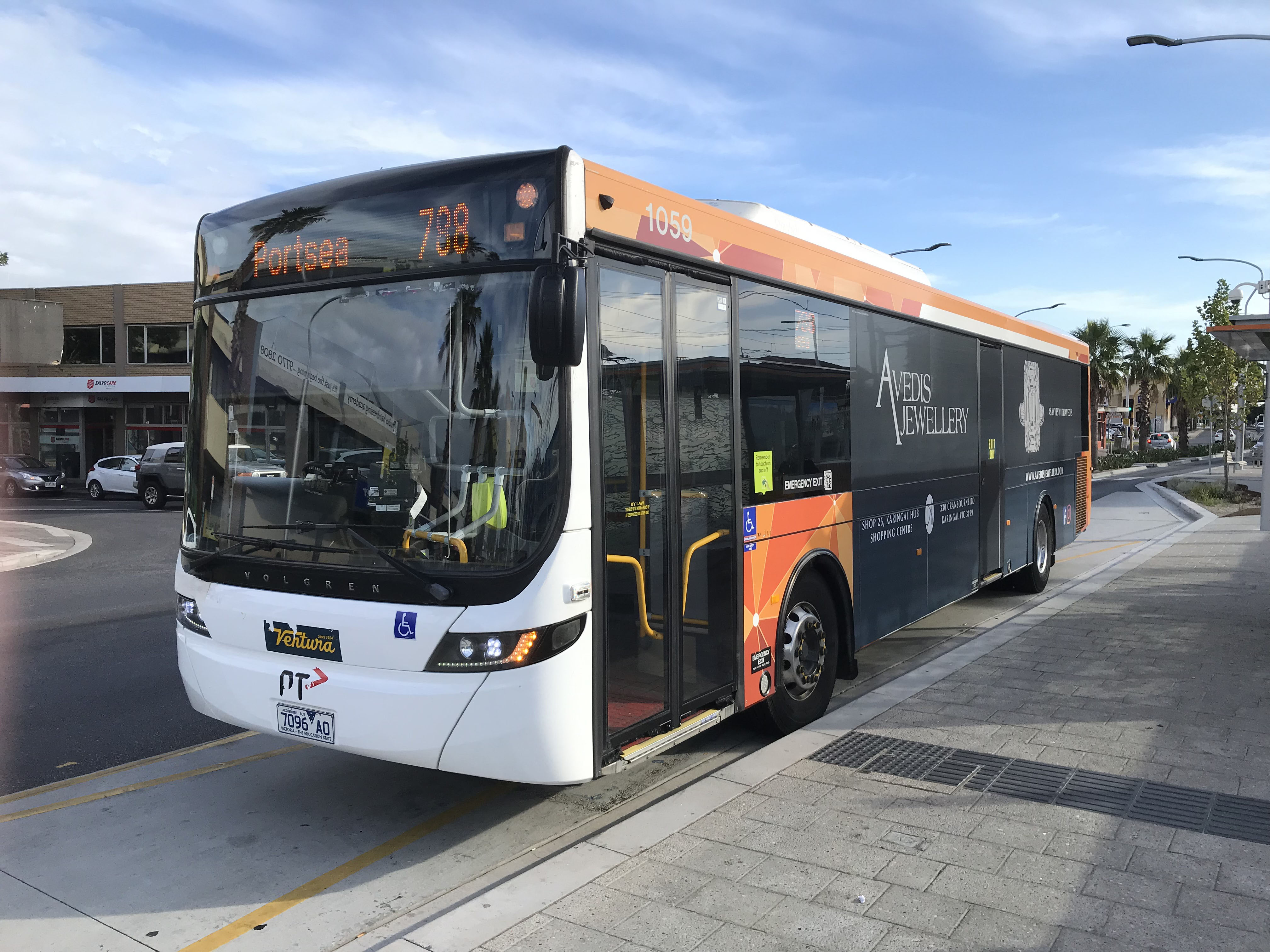 Volvo 1059 was seen again that day at Frankston, once more on the 788 to Portsea.