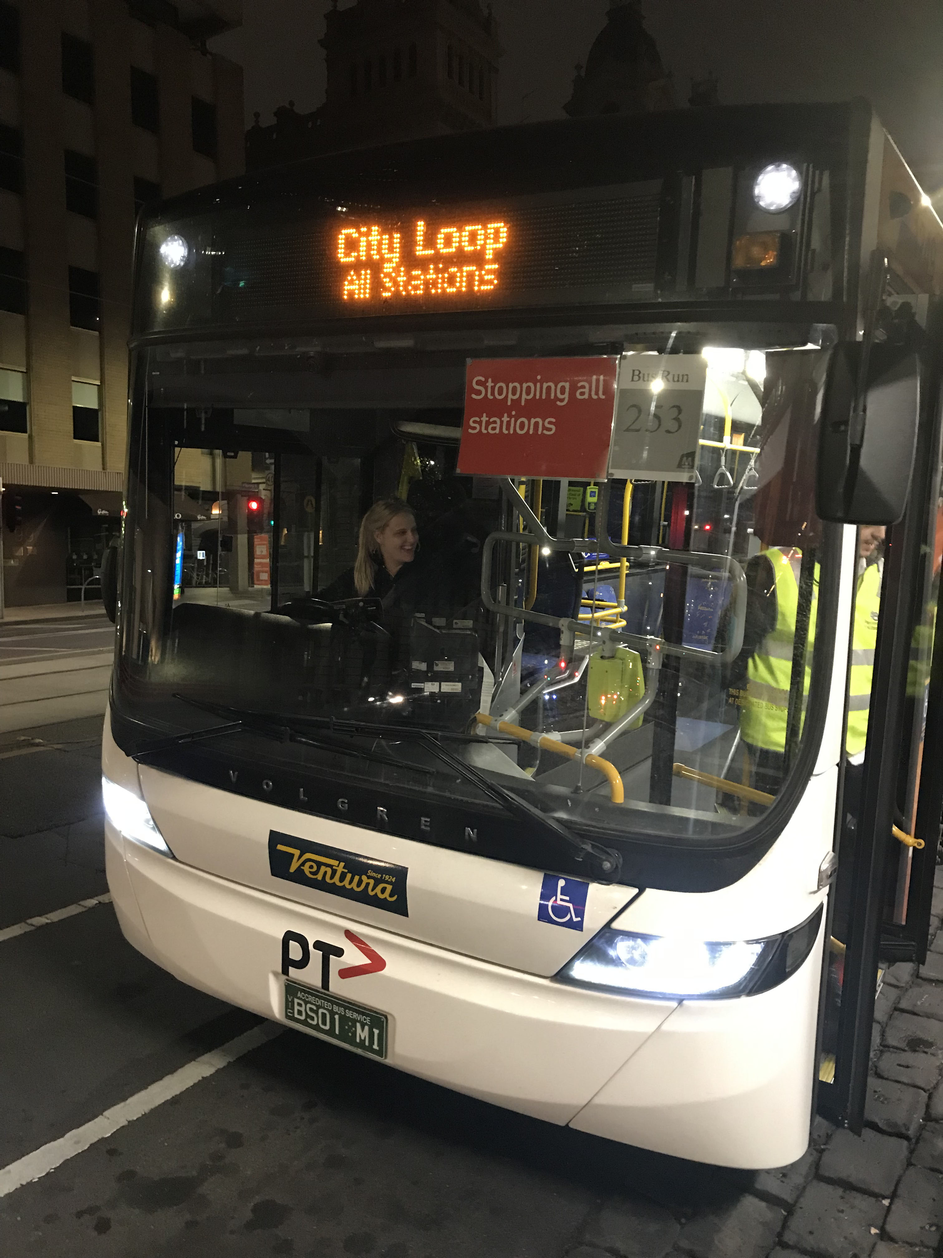Another of the batch, 1256 (BS01XV) was seen in April 2017 at Southland Bus Station branded for and on the 201 Deakin University shuttle.