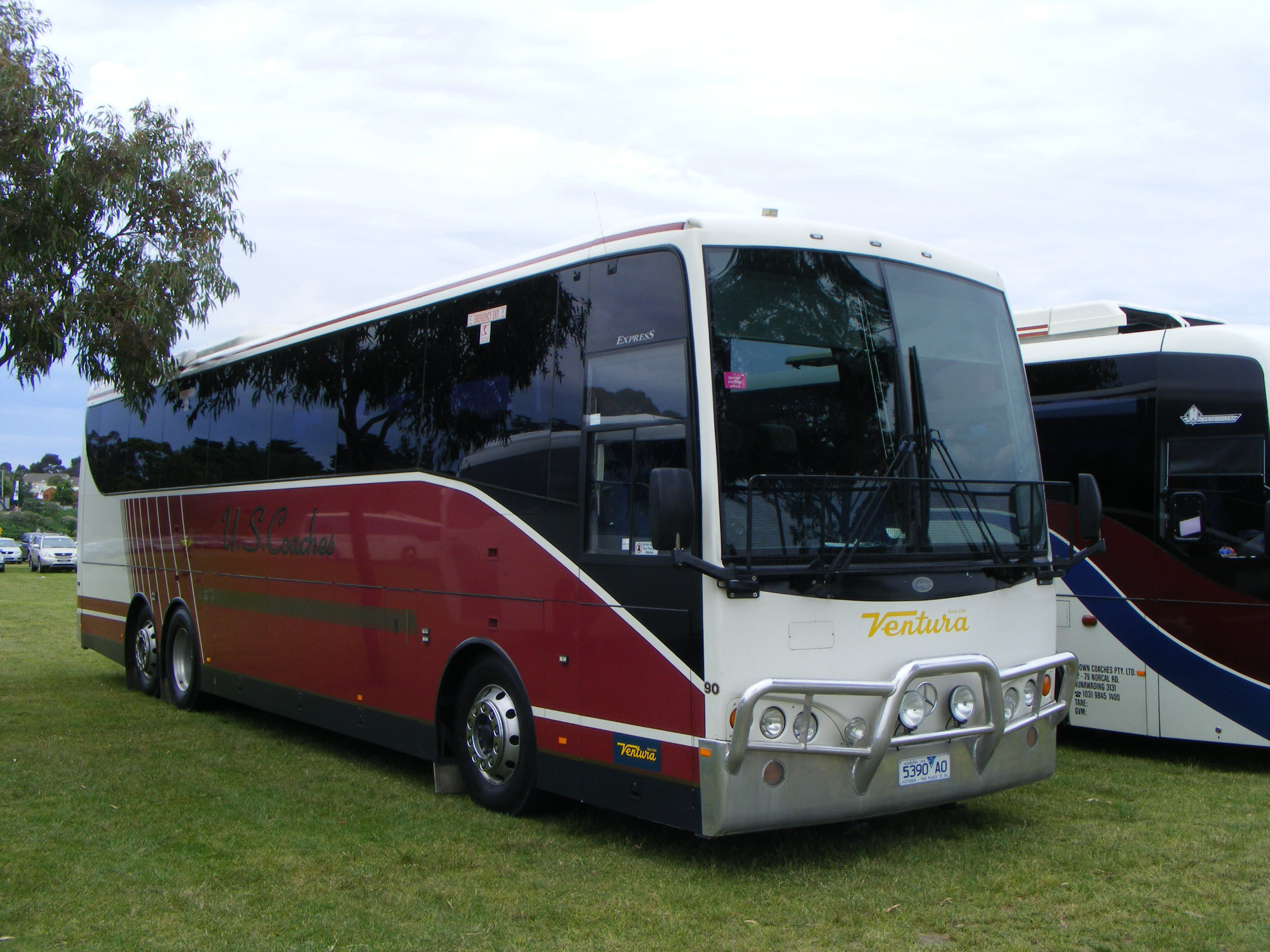 Another former US Buslines coach was 23 (3623AO) seen in February 2015 at Albert Park. Sadly rendered in Ventura's dealer white livery, this NCBC Primero bodied Scania L94IB of 2000 vintage still retains a bit of its old colours just below the air conditioning pod.