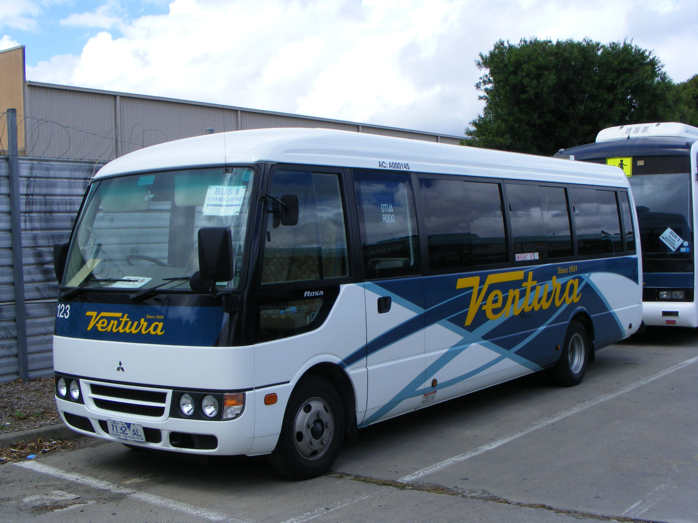 The only Fuso Rosa in the fleet, 123 (7132AO), is seen at the Oakleigh depot in April 2010. It was bought new in 2009.