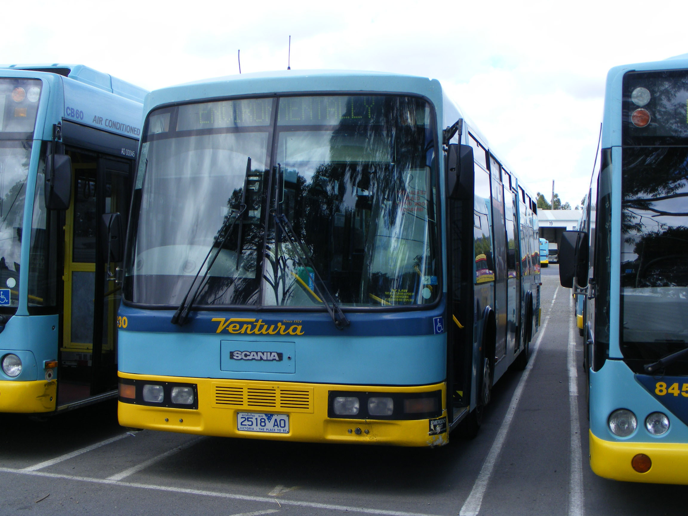 A different style of NCBC body adorns Scania L94UB 830 (2518AO), one of four delivered in late 1999. The body has overtones of PMC's Apollo design. The bus is seen in Oakleigh depot in February 2012.