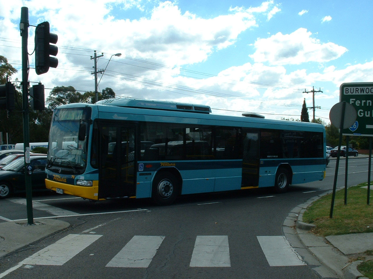 Ventura 79 (3747AO) was one of a pair of Mercedes O500LE Downtowns delivered in October 2003. The pair became 759 and 760, tagged on to the National Bus Mercedes. This bus, seen in April 2004, became 760, whereas 759 (5042AO) was originally 27.