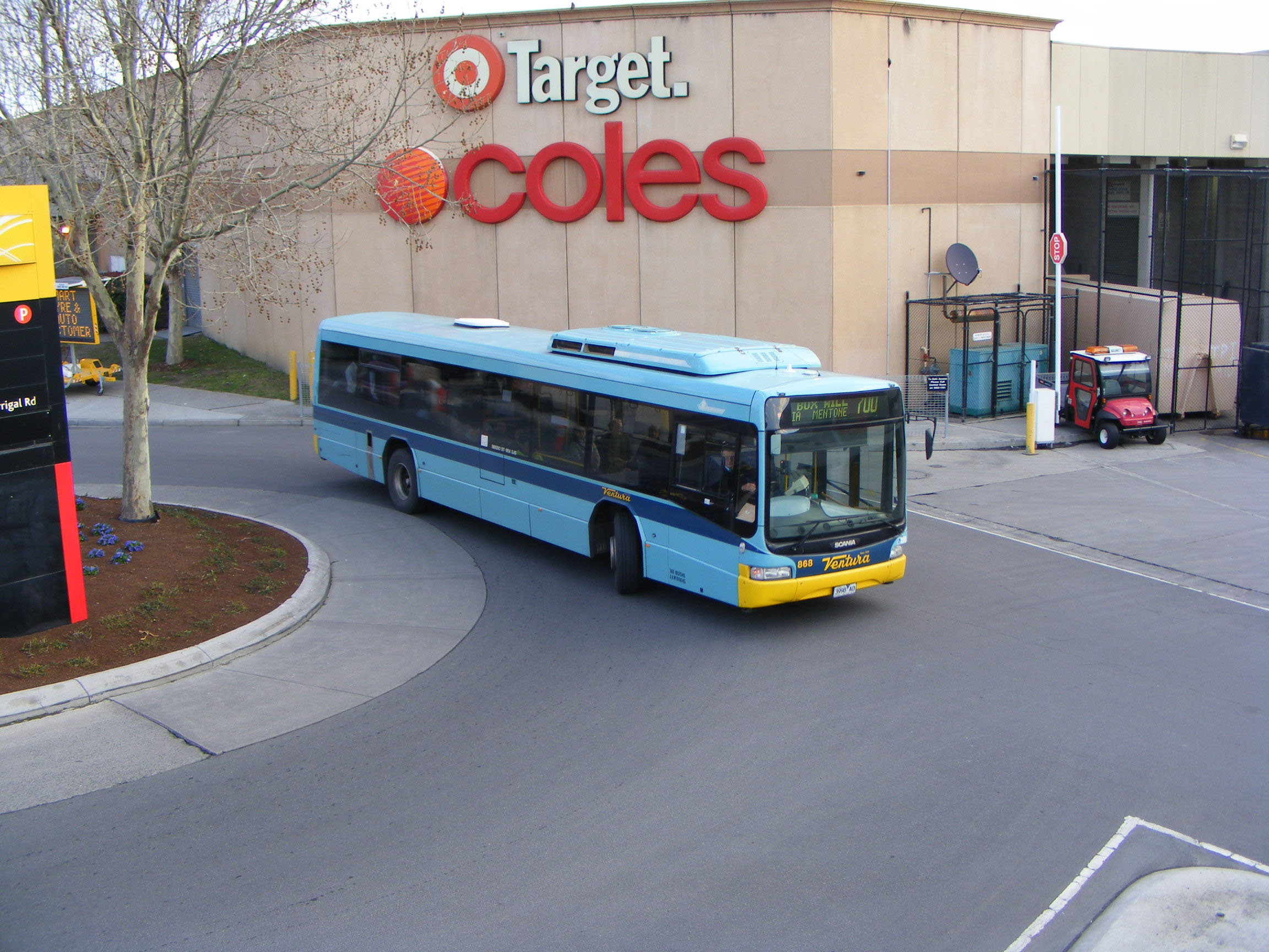 Outside Coles supermarket at the Chadstone Shopping Centre is late 2003 Scania L94UB 868 (3998AO).