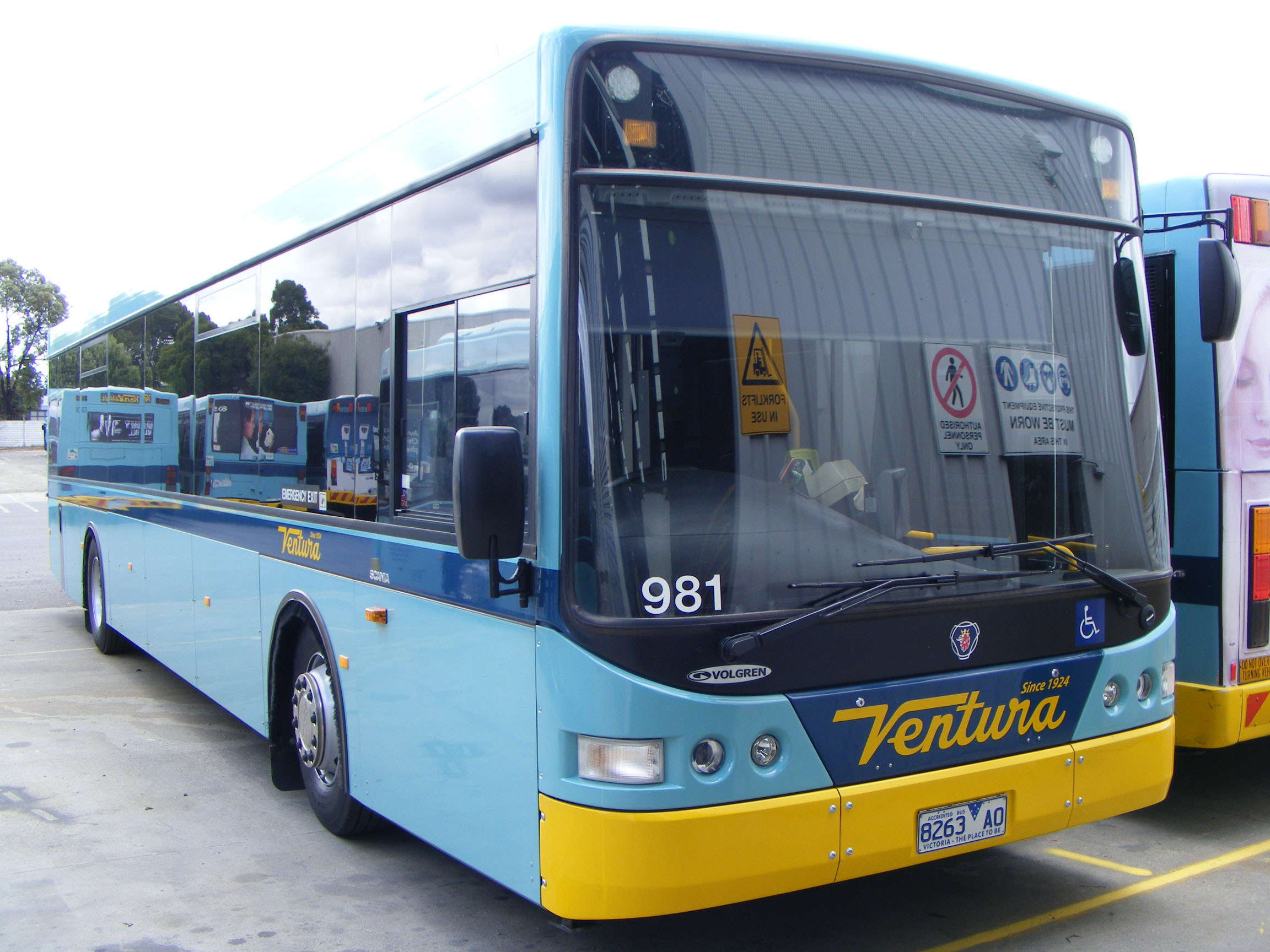 On the Glen Waverley line replacement bus service at Richmond Station in April 2015 is CR228L bodied Scania 985, seen three years earlier at Oakley Station when only a few months old.