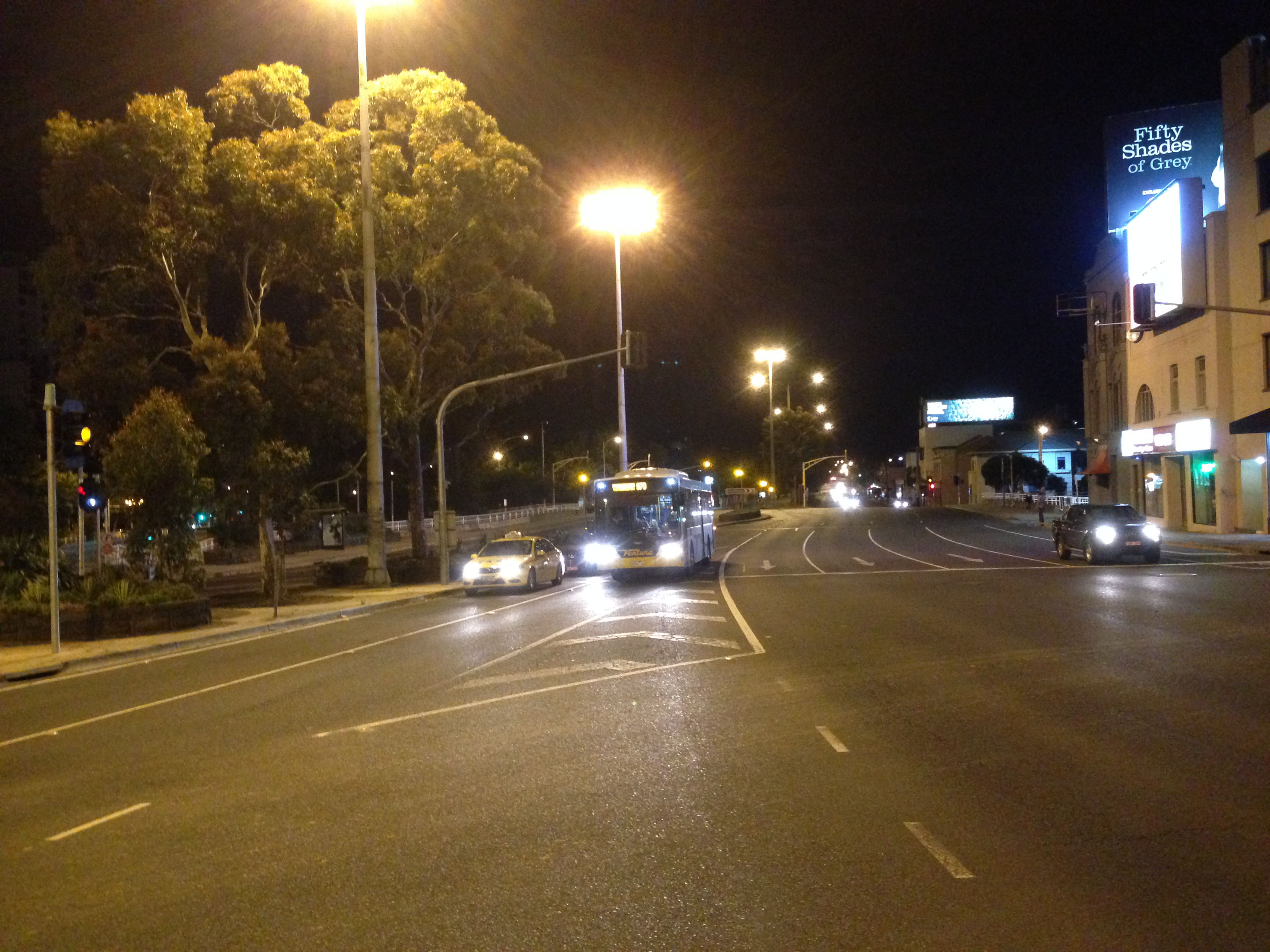 Apart from its yellow bumper this 2002 ex Grenda CR221L bodied Mercedes O405NH, 570 (4509AO), is in plain white. It is seen in March 2015 on Spencer Street with the urban rail bridge behind it at the Flinders Street junction working a route 96 tram replacement bus service.