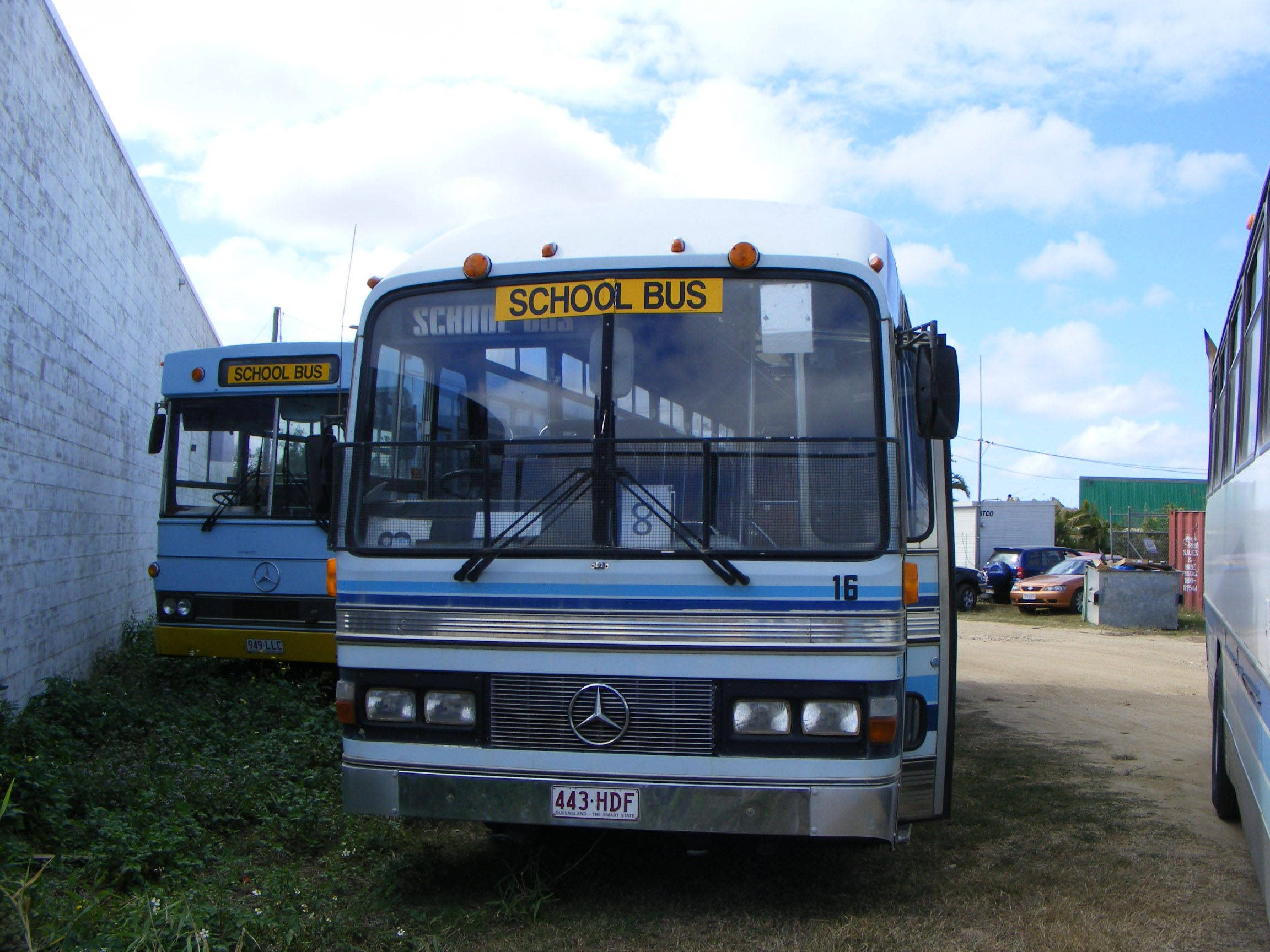 At the Proserpine depot is 16 (443HDF), a Mercedes Benz OC1617 with Custom Coaches 61 seat body, one of at least half a dozen vehicles acquired from Dubbo Coaches. |