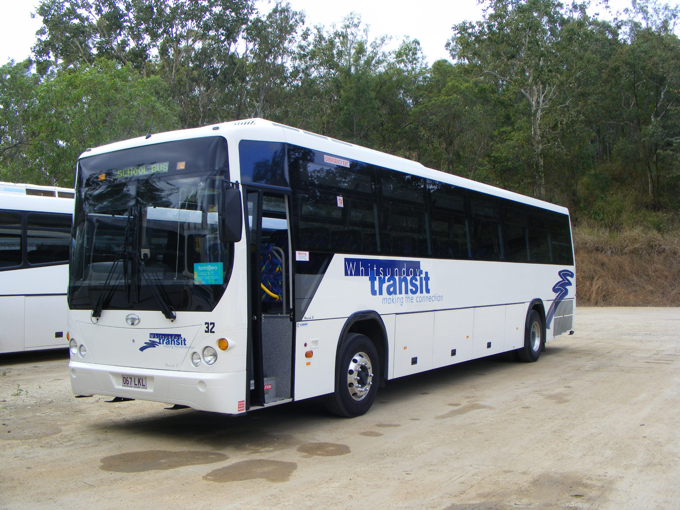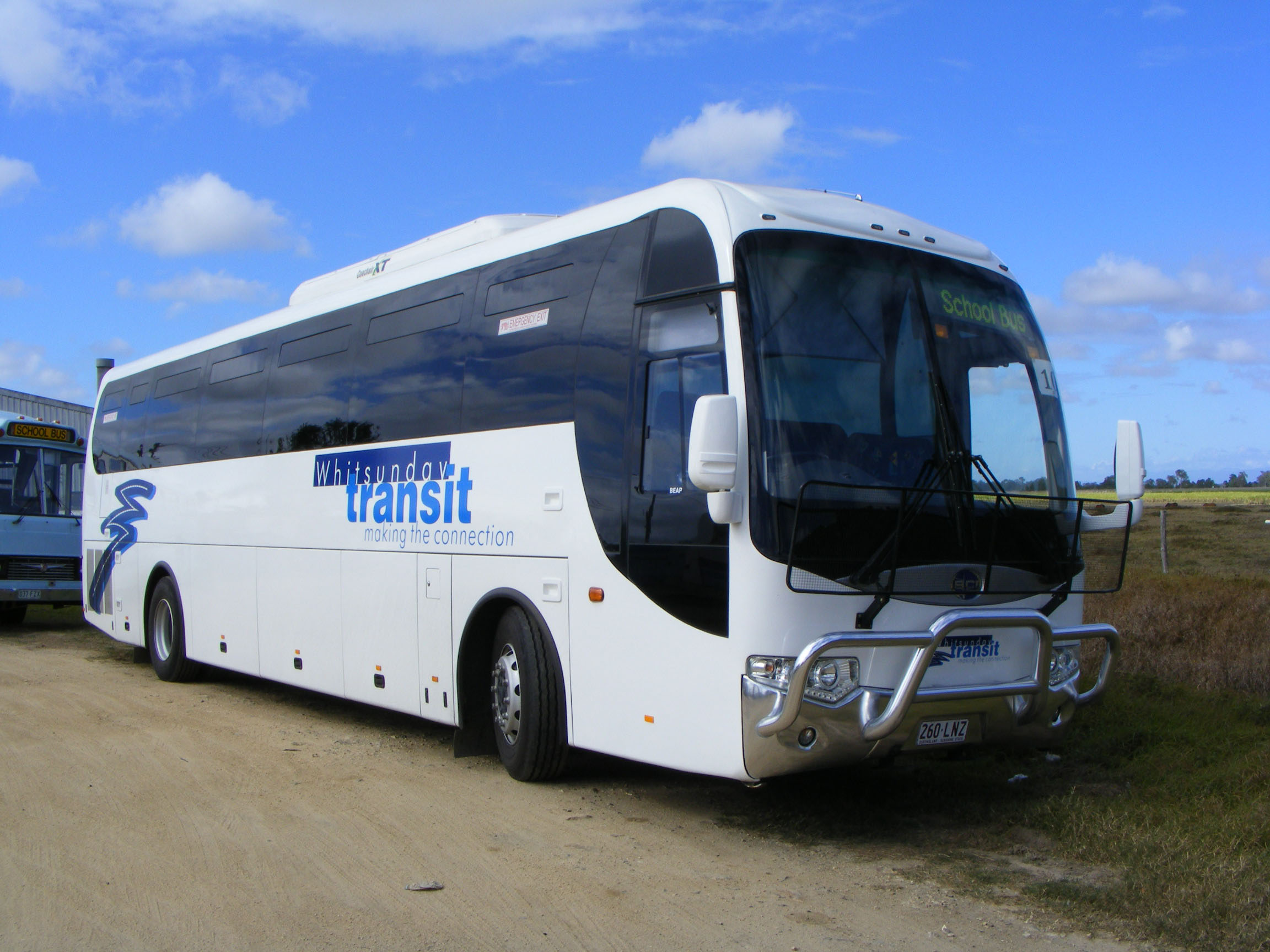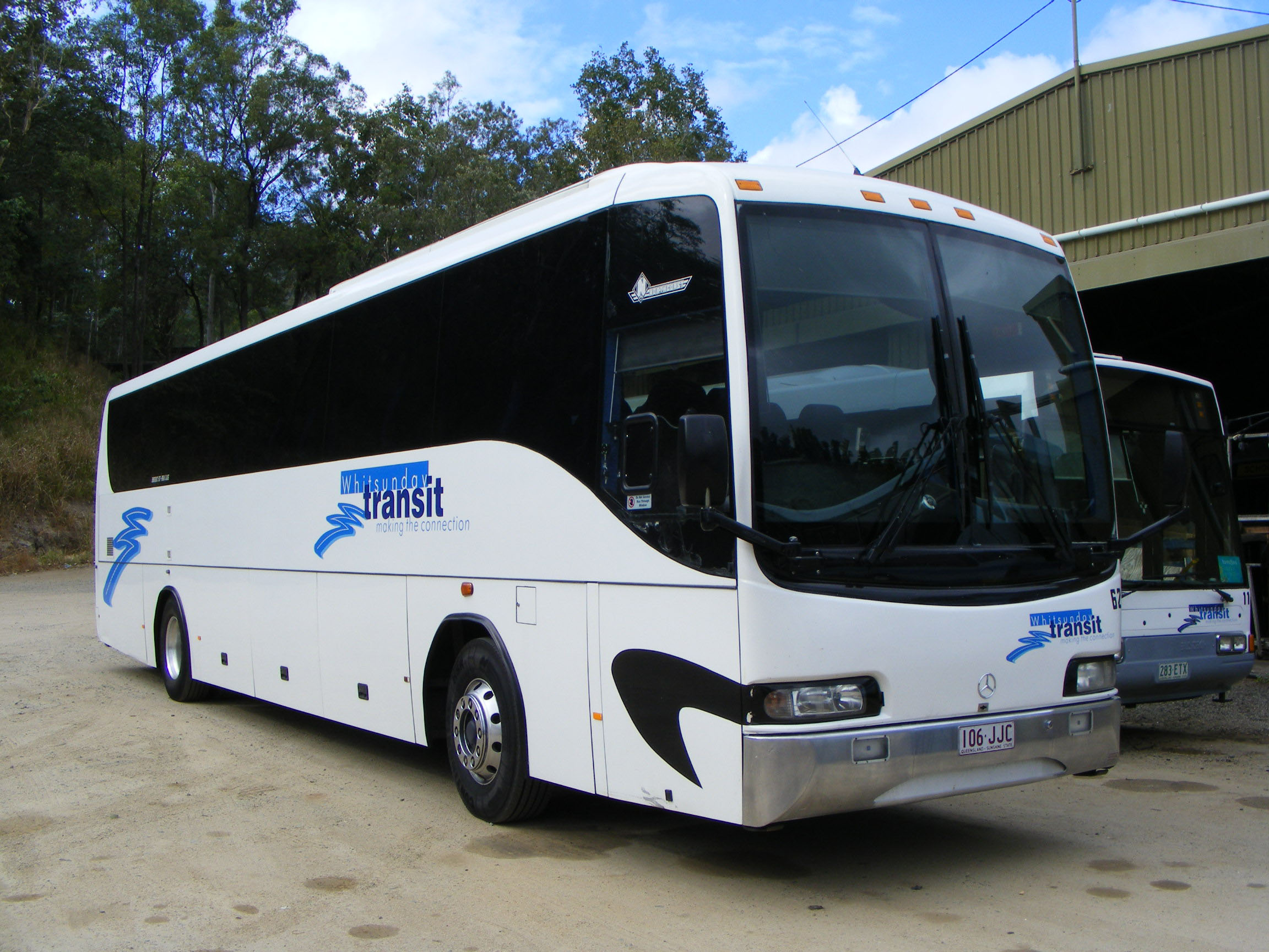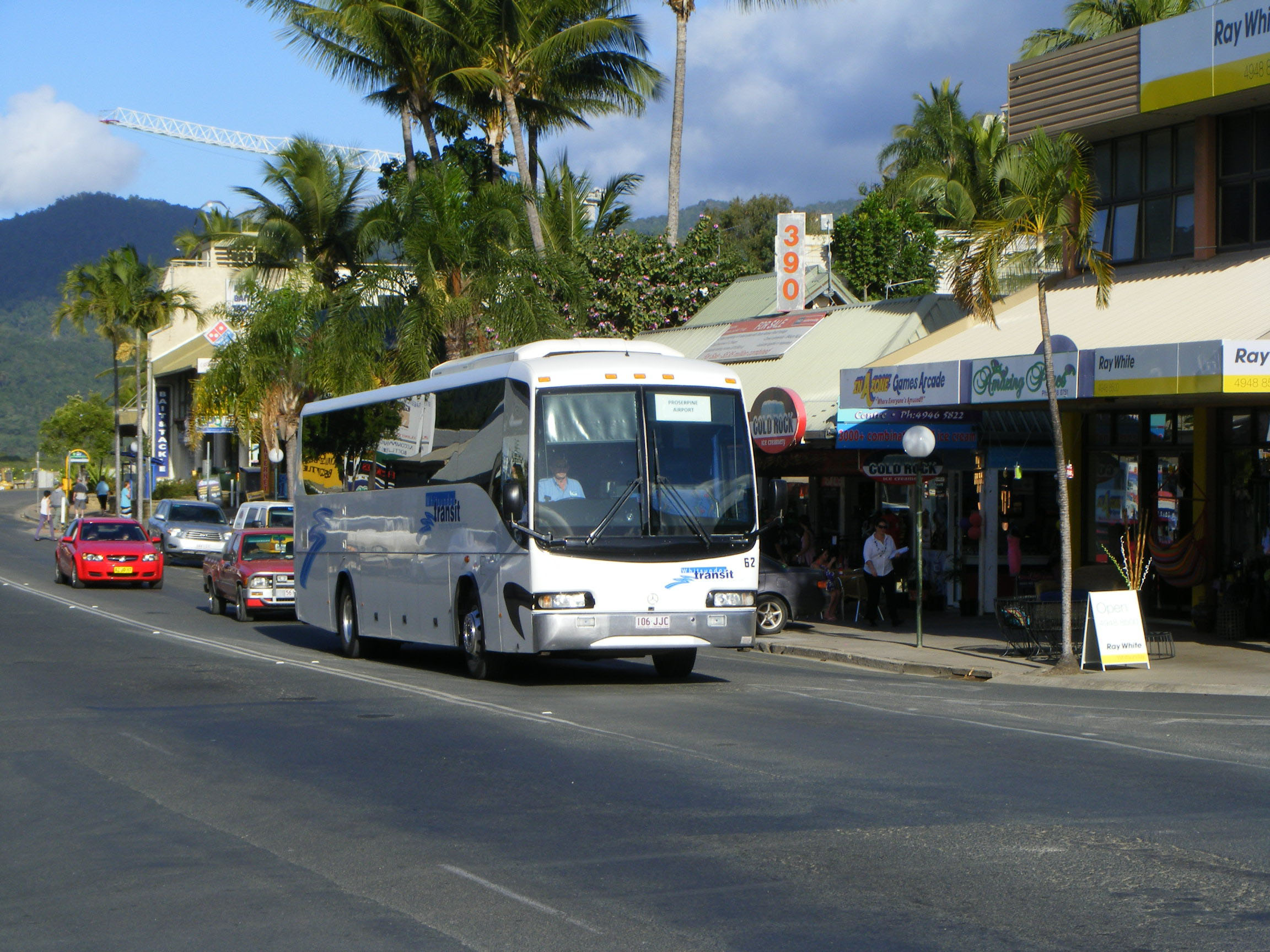 In addition to the assortment of older vehicles for school buses, the company has a fleet of front line coaches. Dating from 2005 is this Mercedes O500RF, 62 (106JJC), with NCBC Protoge coachwork passing through Airlie Beach.