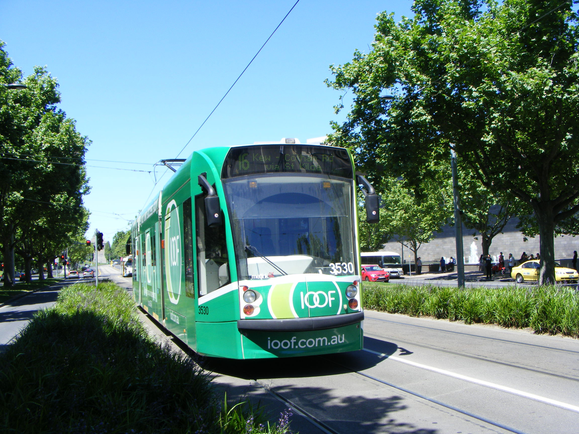 Also wrapped for the finance company IOOF was Combino car 3530 in November 2011. The tram had been photographed only a couple of days earlier in a red wrap for Shell. It was joined by Citadis 3032 promoting IOOF in early 2012.