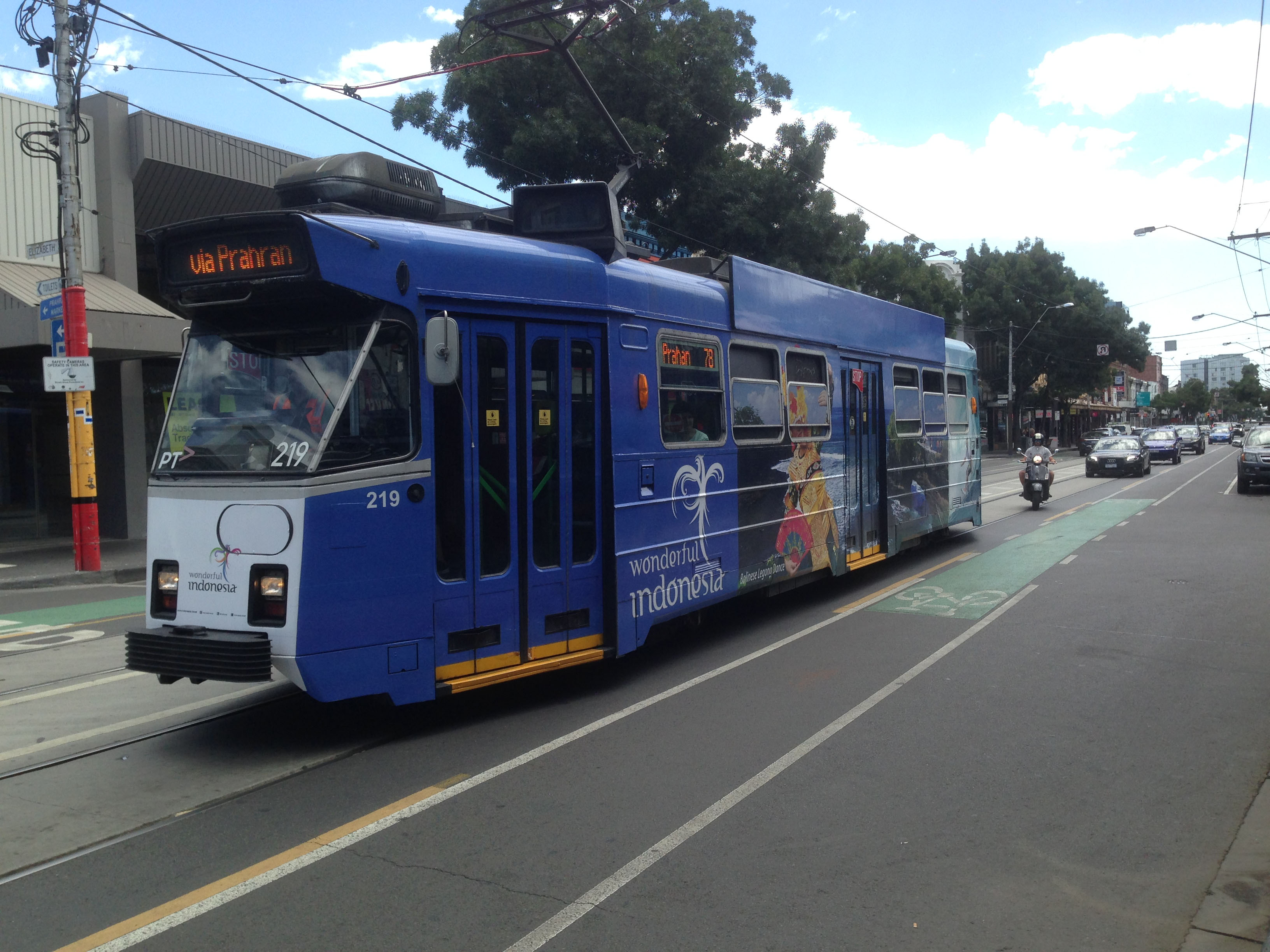 Another country regularly promoting its tourism industry to Melburnians is Indonesia. In November 2015 Combino 3537 is doing just that on St Kilda Road on route 5.