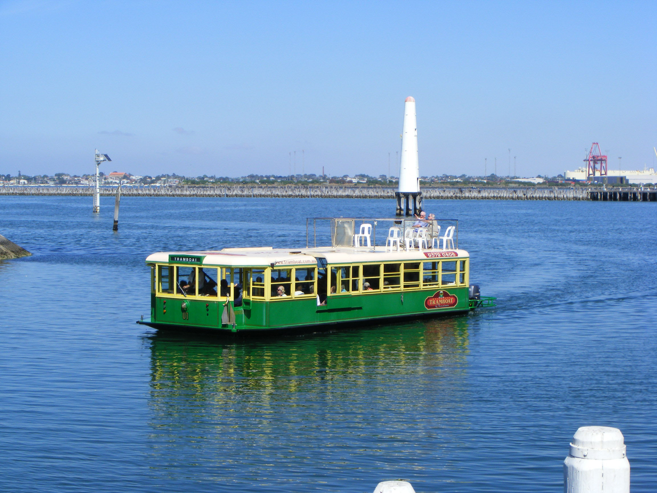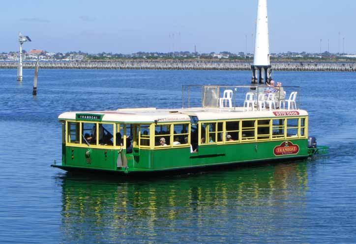 Imitation is the sincerest form of flattery, so it is said. Though not owned by Yarra Trams, this watercraft is dubbed the Tramboat and is seen on a cruise round the docks at Port Melbourne.