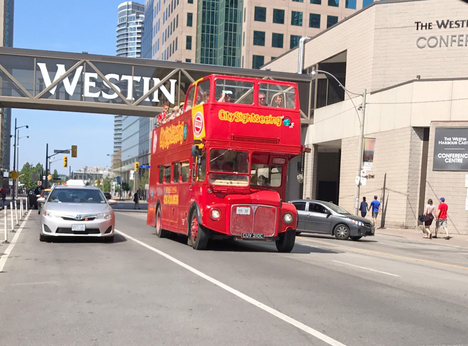 In full City Sightseeing garb, RM2209 is seen pounding the streets of Toronto again in June 2017 re-registered as 685 9BF.