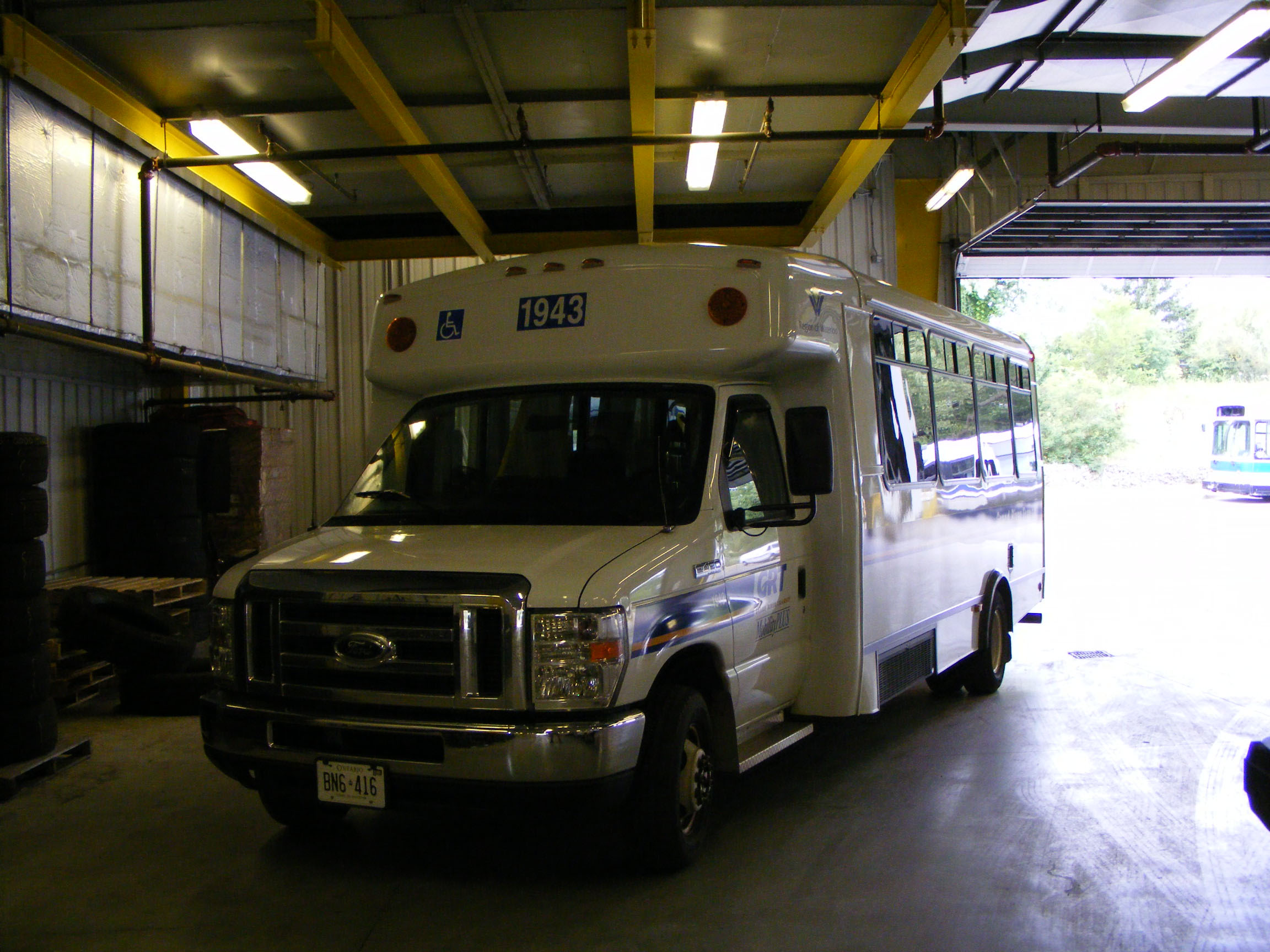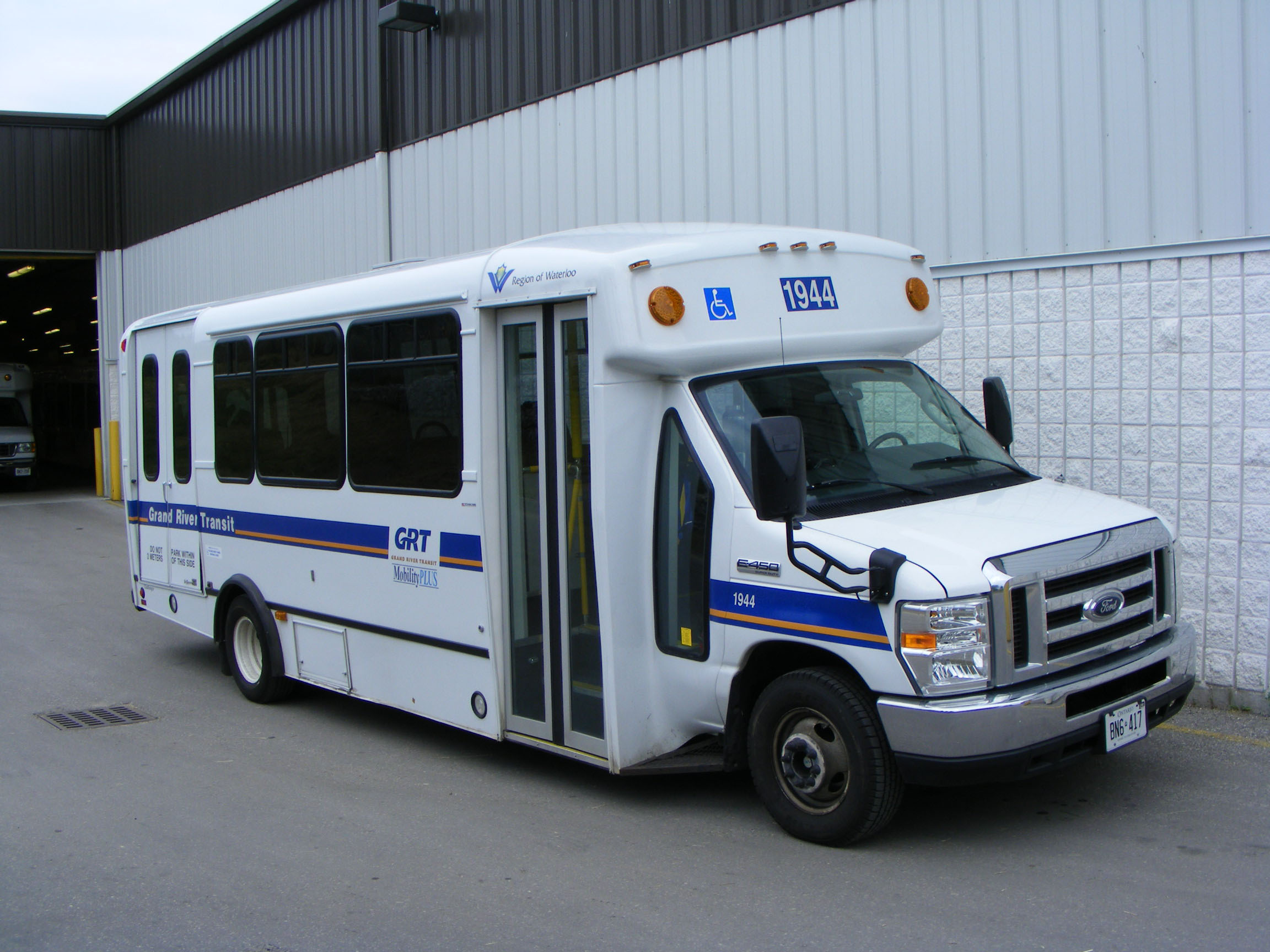 In common with most North American fleets Grand River Transit has a paratransit division using vehicles like this Ford E350 1902, one of a trio new in 2003.
