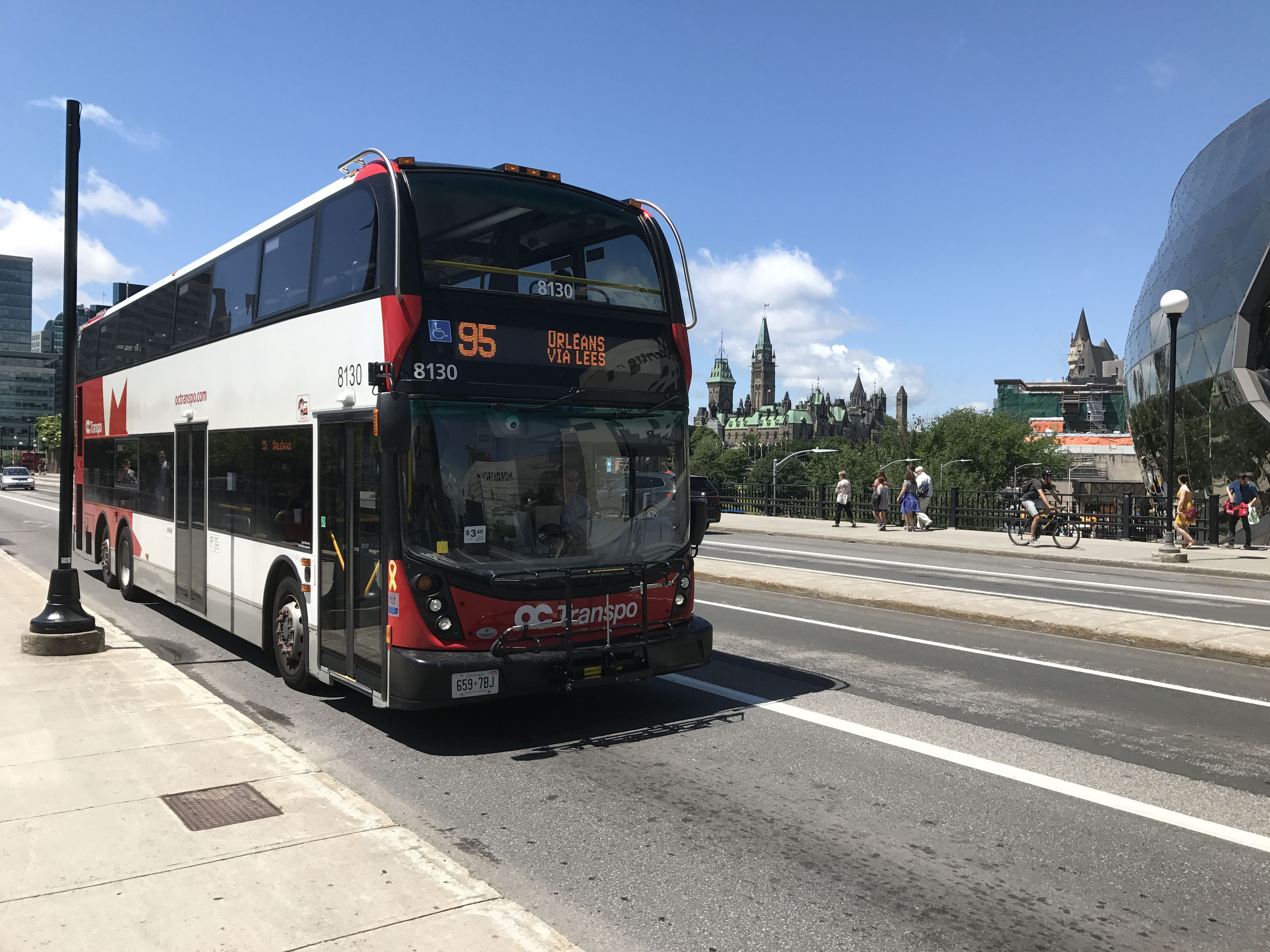 Following on from the 75 Mark II Enviro500 buses delivered in 2012, OC Transpo was an early recipient of the Enviro500MMC model with sixty being delivered between 2015 and 2017. This is 8130 on a beautiful July day in 2017, shortly after the washed out Canada 150 celebrations. It is crossing the Mackenzie King Bridge with the Parliament buildings in the distance and the Convention Centre on the right.