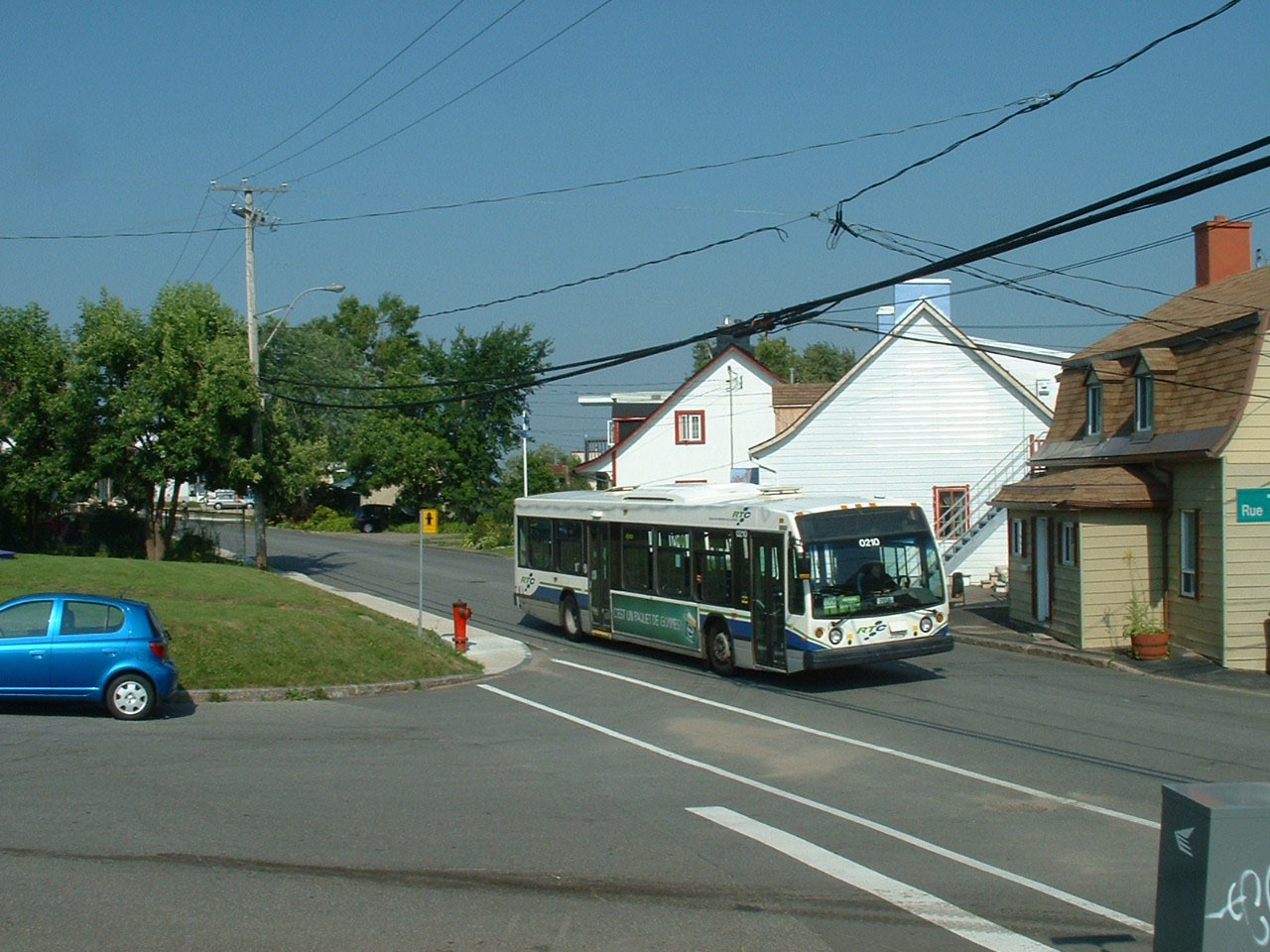 In the summer of 2007, several MCI Classics were still in service in the colours of STCUQ, Societe De Transport De La Communaute Urbaine De Quebec, the RTC's predecessor. This Classic, at the terminus near the government buildings is 9223.