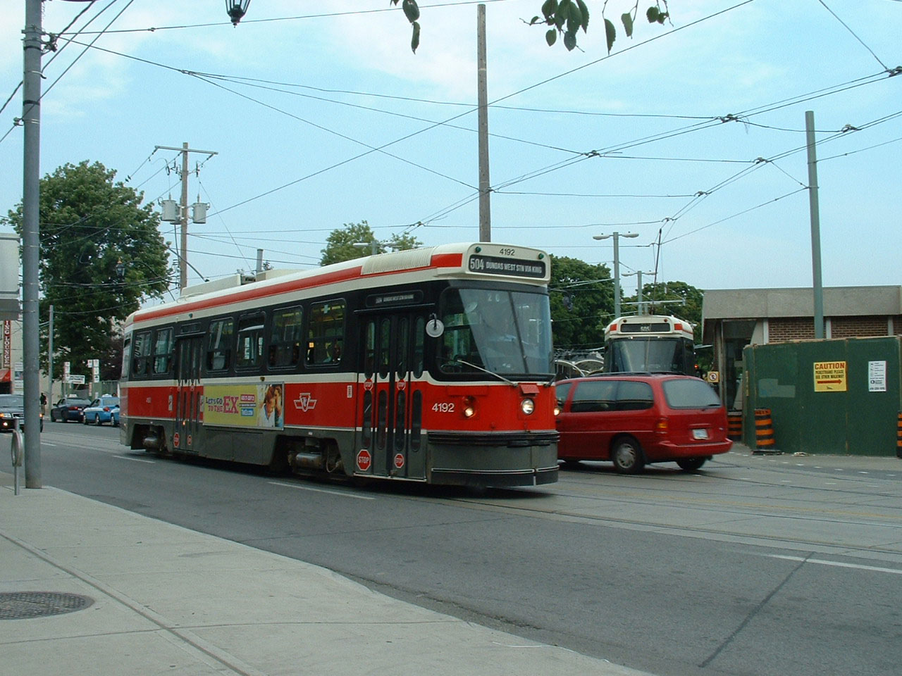 August 2007 and CLRV 4192 passes Broadview Subway Station, the terminus of streetcars 504 and 505.
