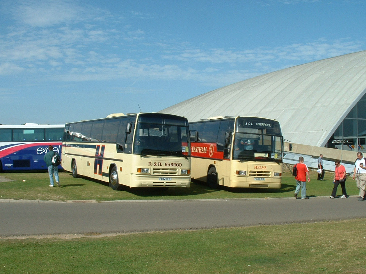 This pair of Plaxton Paramounts 3200s are quite a contrast: on the left is David H Harrod Coaches Dennis Javelin F882RFP, which they had owned since new, and on the right, from Merseyside, is a Volvo B10M - originally with Wallace Arnold - F406DUG of Helms of Eastham. Both were seen as part of the Plaxton Centenary display at Showbus 2007.
